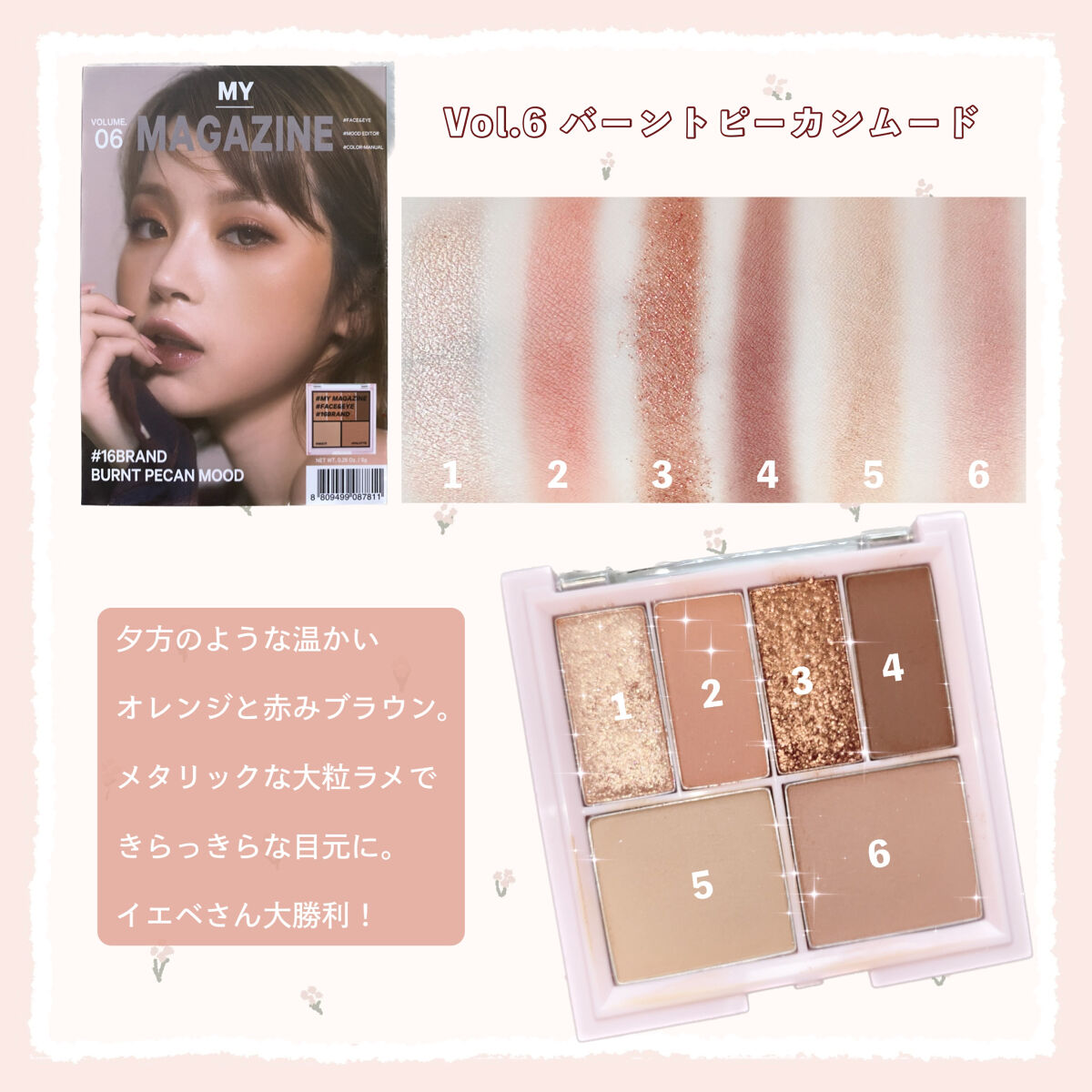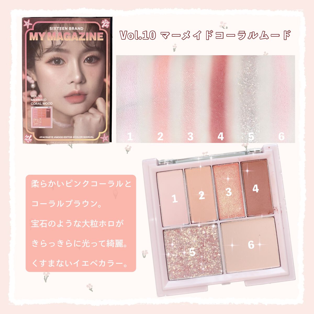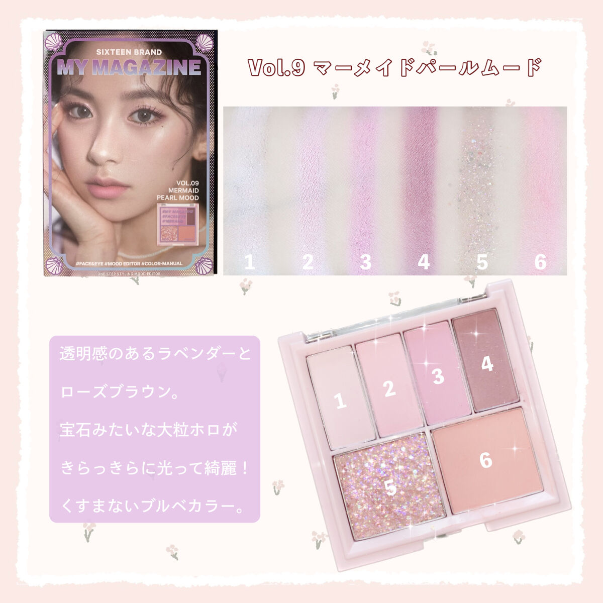 雑誌みたいでかわいい!16 MY MAGAZINE マルチパレット📚💘 アイシャドウ・チーク・ハイライト・アイライナー・アイブロウとしても使えるからこれひとつで統一感のあるメイクに¨♡¨時短メイクにも🫶🏻🤍 ̖́- グリッターがキラキラ!明るいピンク系と締め色ブラウンで可愛いメイクに⋆⸜💗⸝⋆ ガイド付きなので塗り方もわかりやすい!韓国アイドルのようなラメ感も簡単に演出できてかわいい`🤍´