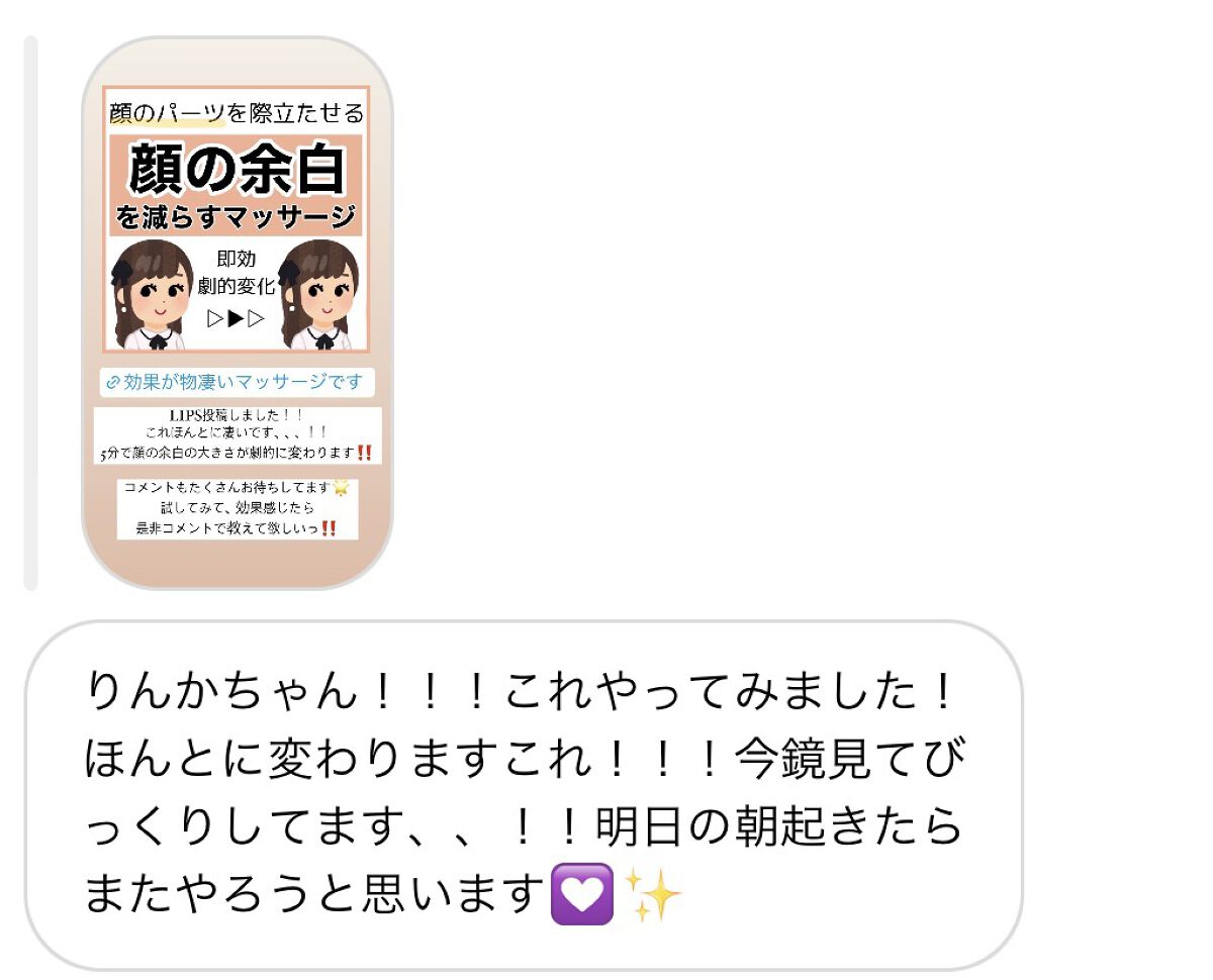 最近ちょうどリンカちゃんの小顔マッサージいろいろ調べてた! タイミング良すぎて嬉しいです早速してみます!
