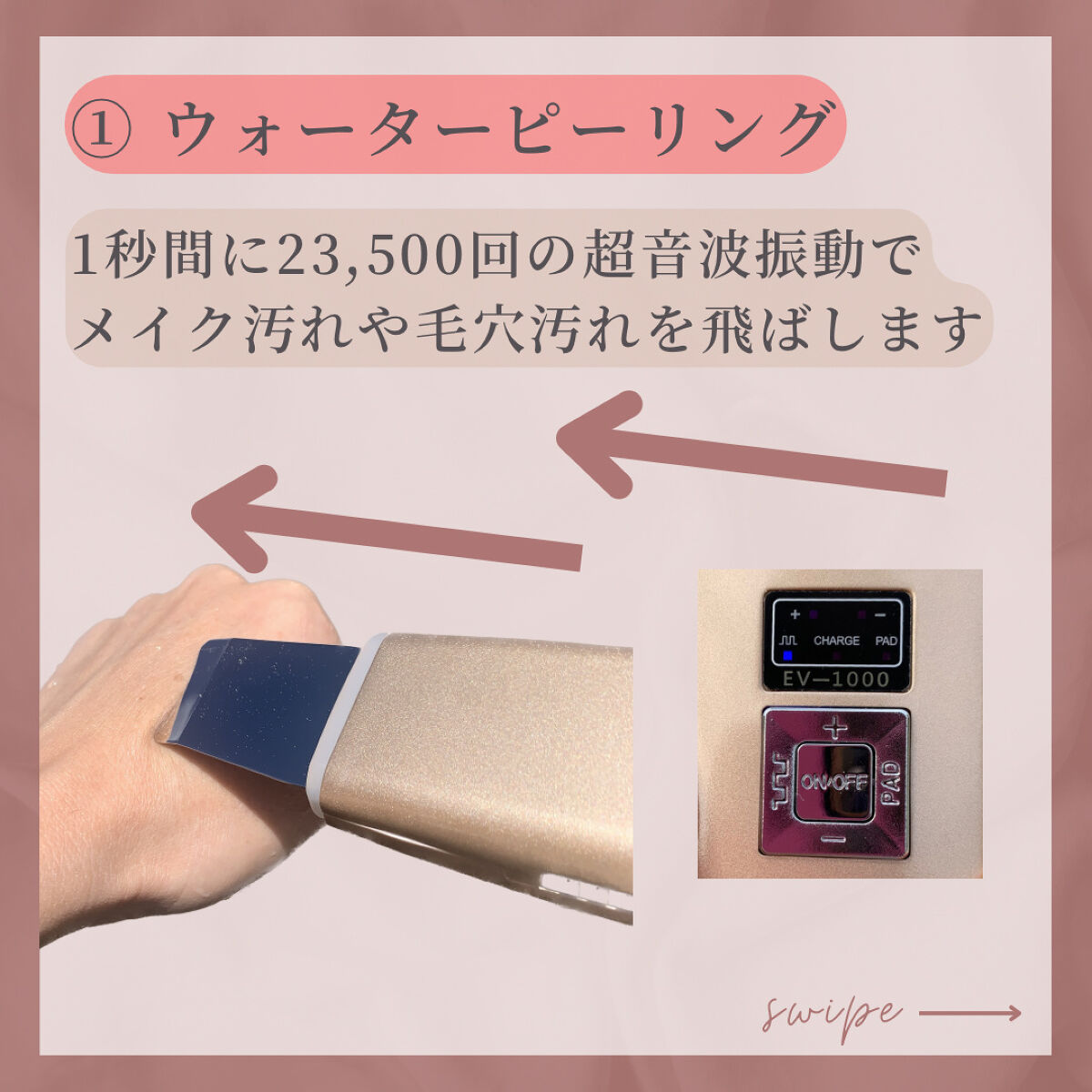 【毛穴の黒ずみ撃退💎美顔器】➸COSBEAUTYアクリアルピーリングプロ自宅で簡単エステ?!超音波で毛穴汚れや古い角質をスッキリ除去✨️📍ピーリングモード《使用方法》洗顔後、お肌を水でしっかり濡らしてから使用します🛀力は入れすぎずに振動を伝え...