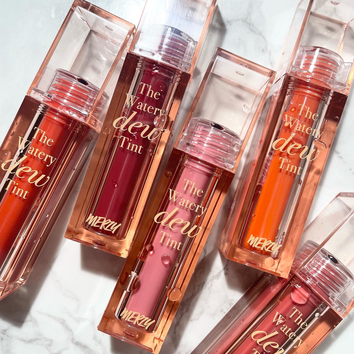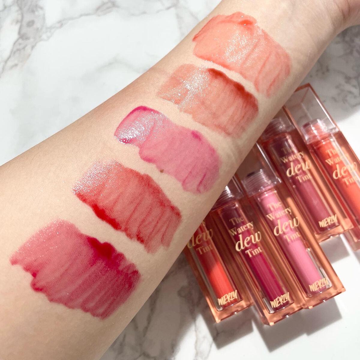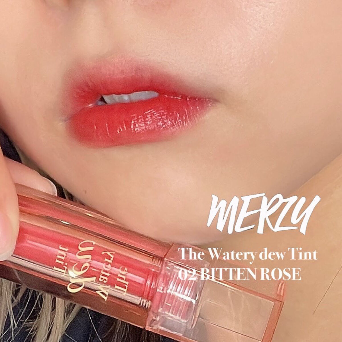 \程よいツヤ感🫧華やかな水光ティント💄/♡MERZYTheWaterydewTint色持ちがいいMERZYのちゅるんティント🩷ベタつかずさらっとしてるのに、ガラス玉みたいな光沢感がとっても綺麗🐰ひと塗りするだけでしっかり色づくし、ツヤツヤな唇...