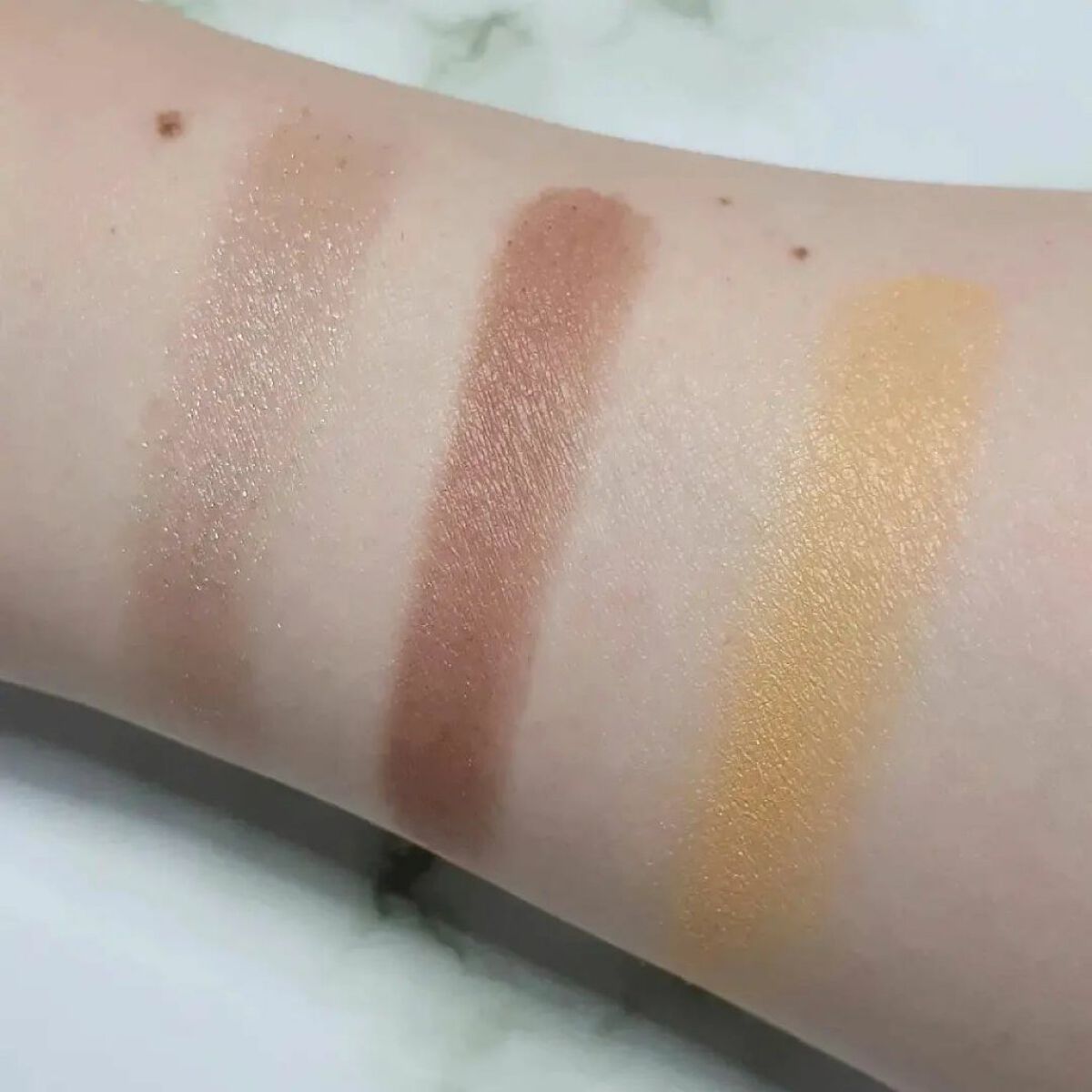 全色にパールとラメがふんだんに入っていて控えめな発色、上品な煌めきが美しい😍❤ 肌馴染みが良く、グラデーションも作りやすいので、どんなに重ね付けしても失敗しない❗ 柔らかめな粉質はしっとりとして密着度が高く、粉飛びもラメ飛びもしません‼ 上品なツヤと輝きは流石👏👏👏❤