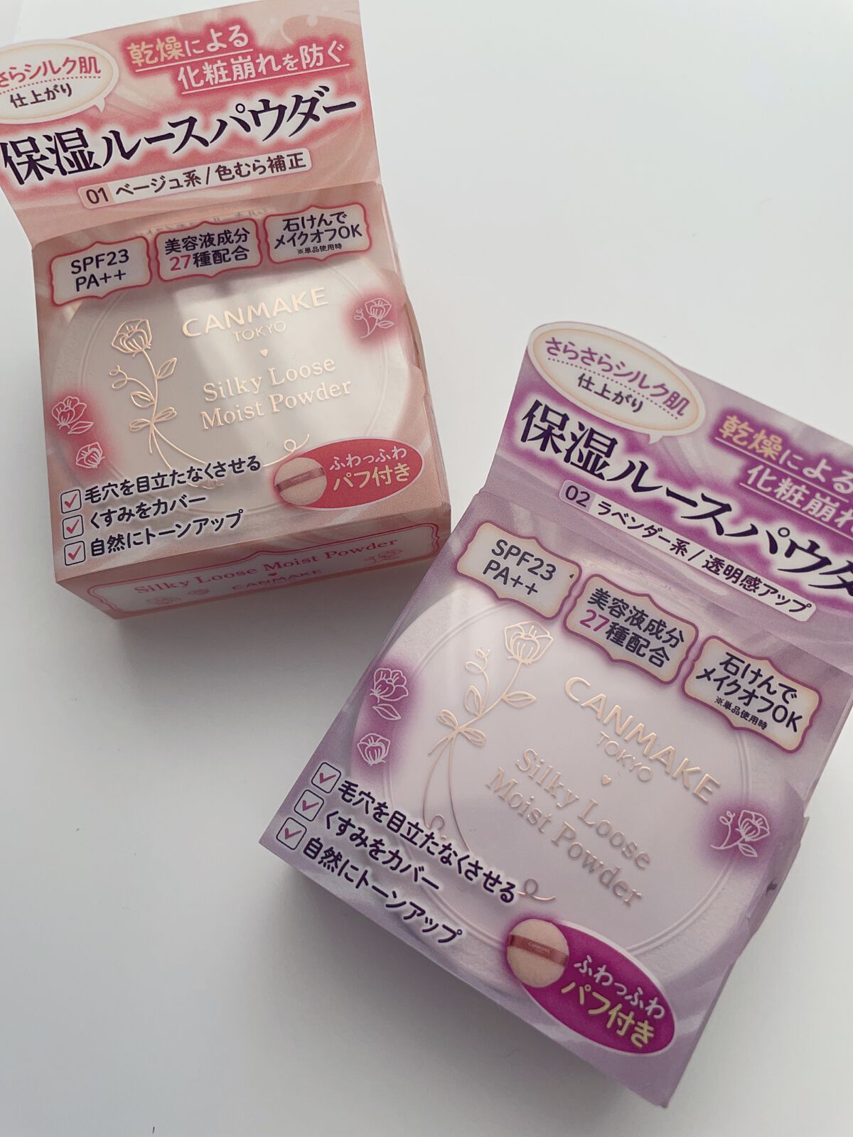 🌙キャンメイク🍓🎀シルキールースモイストパウダー01シルキーベージュ¥968☀️SPF23・PA++🧼石鹸で落とせる🐑ふわふわパフ付き出先でパウダーを忘れたときの応急処置として購入したシルキールースモイストパウダー💭☑️毛穴カバー☑️トーンア...