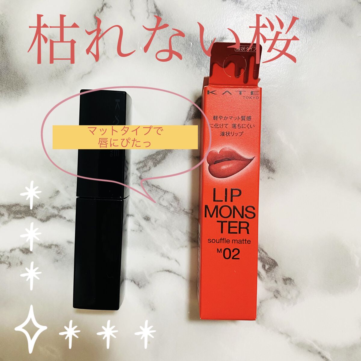 大人気リップモンスターのスフレマットシリーズのレビューです! カラバリ8色のうちM02番(枯れない桜)を使用しました! 塗った瞬間から唇に密着してくれるので、食事などで落ちにくかったです!