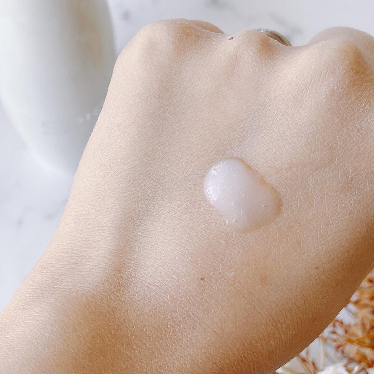 | ほんのり透ける白い液で、テクスチャはゆるめ。よく伸びます。 | 詳細を見る | |