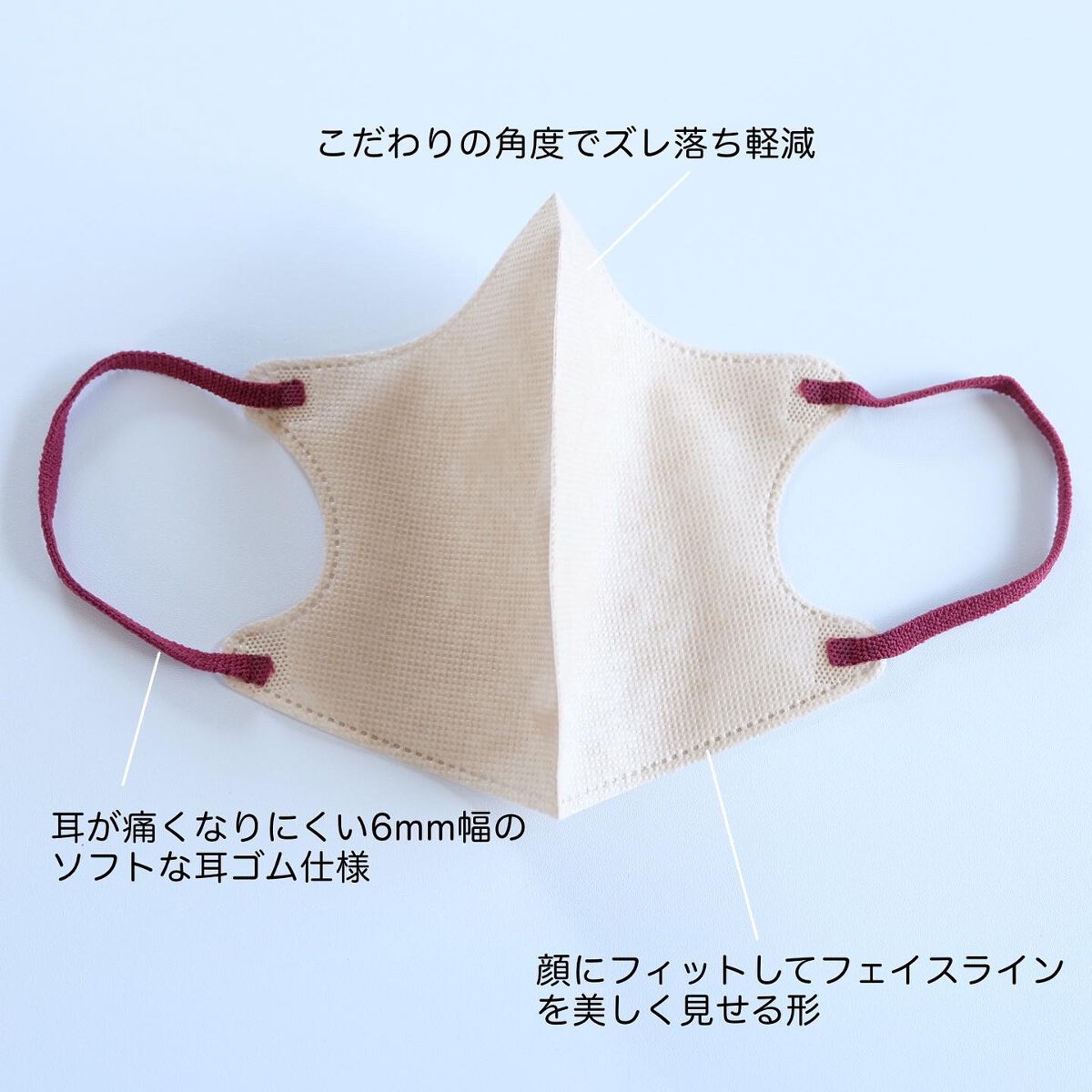 ✔︎ こだわりの「角度」でマスクのズレ落ち軽減 ✔︎ 口元の空間が広く呼吸しやすい ✔︎ 顔にフィットしフェイスラインを美しく見せる ✔︎ 汚れが目立たない内側カラー ✔︎耳が痛くなりにくい6mm幅のソフトな耳ゴム仕様 生地はしっかりめなのにかなり薄い😳 フェイスラインにフィットし、 柔らかいゴムだから長時間つけても痛くない💗 そして何より呼吸しやすい😍👏
