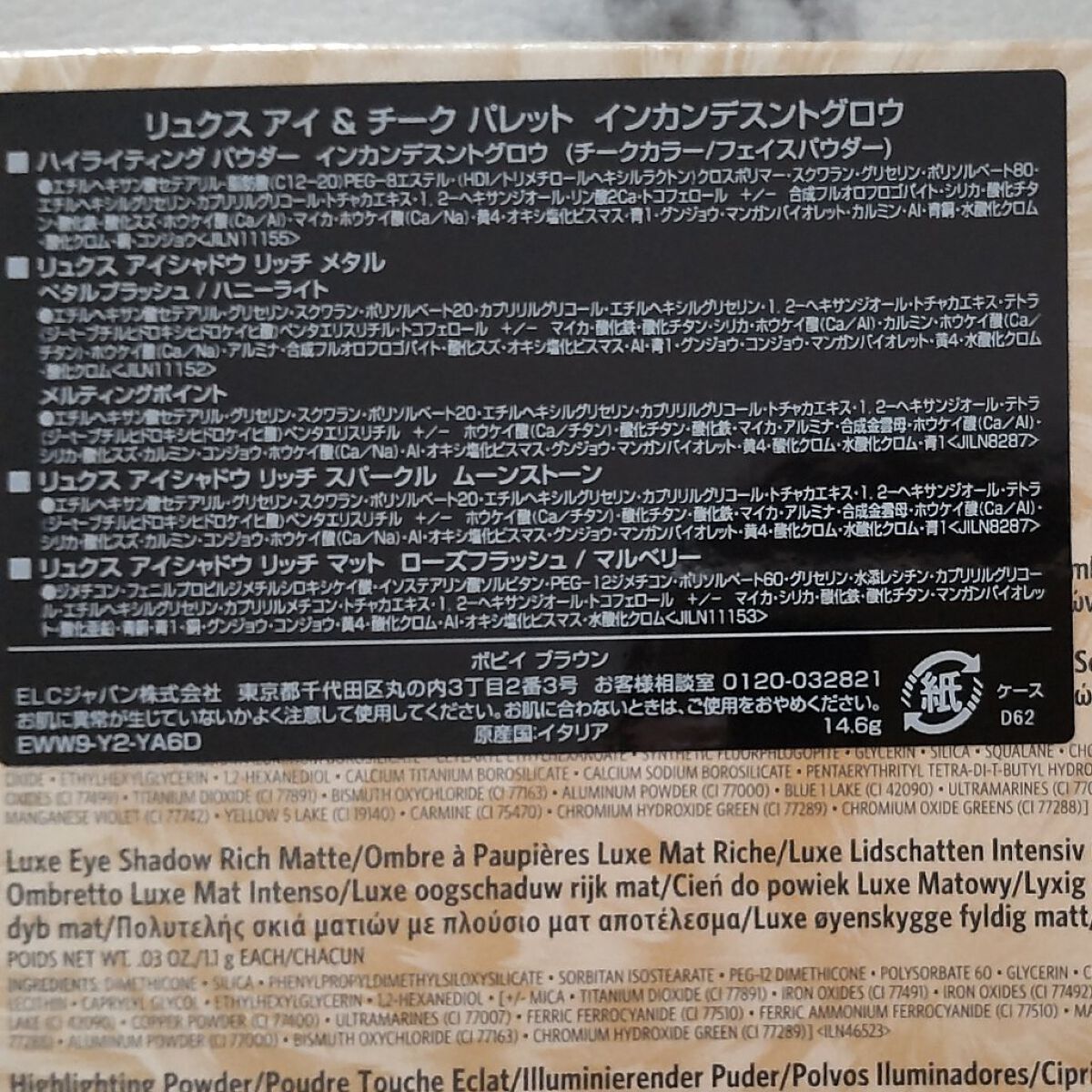 - 【限定発売】LUXE ENCHANTED COLLECTION その輝きが⾒る⼈を魅了して⽌まないリュクスアイシャドウと、自ら発光するような⽴体感のある輝きを肌にもたらすハイライティングパウダーを詰め込んだ、ホリデイシーズンにふさわしいラグジュアリーな限定パレット。リュクスアイシャドウの異なるフィニッシュ、リッチメタル、リッチスパークル、リッチラスター、リッチマット、を本パレットのために開発した新色と⼈気色で構成。 ラグジュアリーな質感で豊かな発色と輝きが目元を美しく彩ります。オレンジピンクベースのパレット、インカンデスントグロウには、頬にピンクゴールドのツヤを与えるハイライティングパウダーの新色、インカンデスントグロウをイン。オレンジブラウンベースのパレット、コパーグロウには、ヘルシーで暖かみのあるツヤを与えるコパーグロウを。これ1つでつややかでラグジュアリーなメークが楽しめるパレットです。