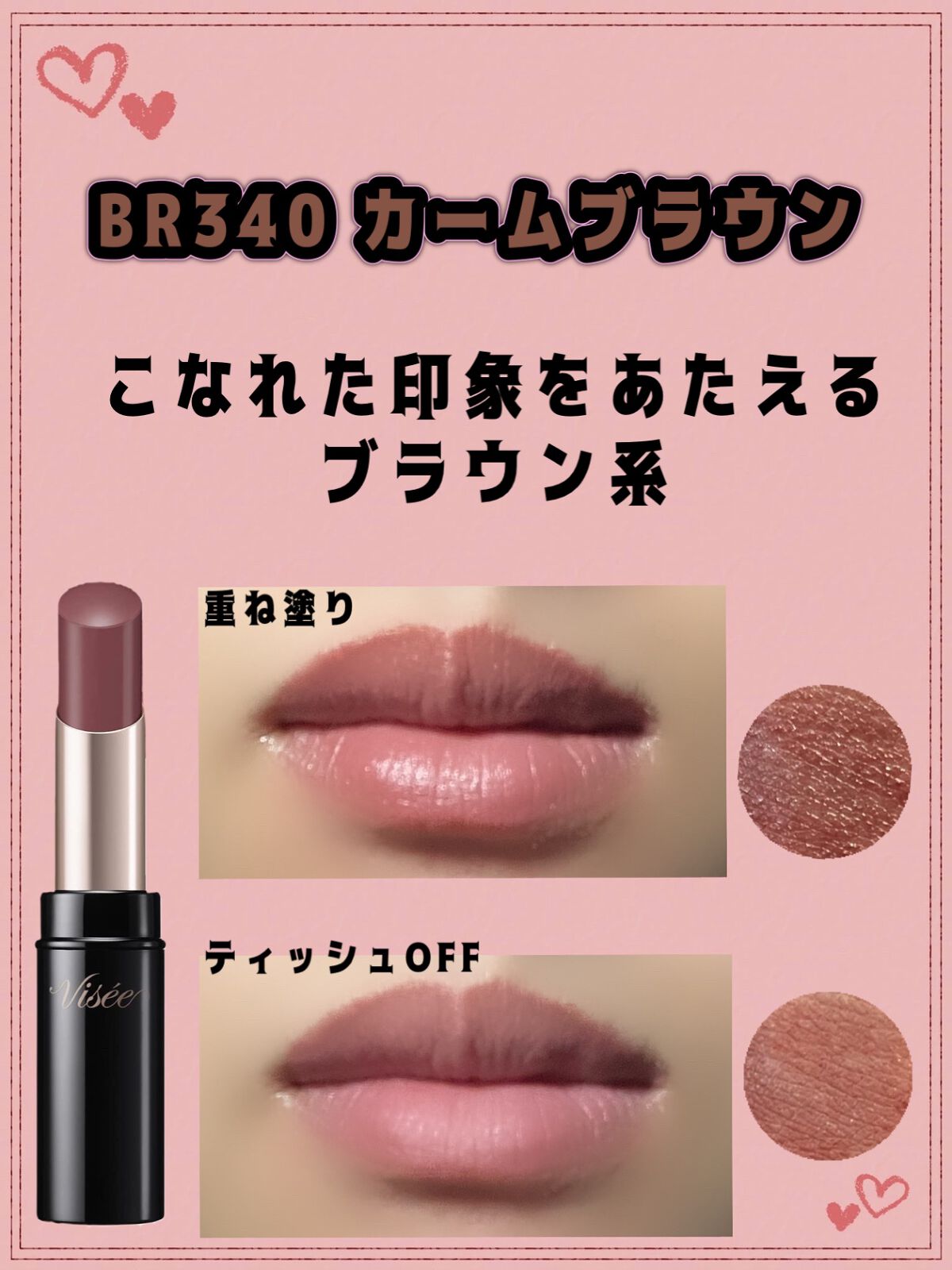 直塗りしても、まるでフィンガーブラシやシリコンブラシでぼかしたかのような仕上がりになるのがお気に入り! BR340カームブラウンは、ぬくもりを感じる肌なじみのよいピンク系ブラウン。じんわりと唇を染めたような透け感でほわっと色づきます。 マットリップなのにしっとり感が続きパサつきや荒れ感が出にくいのが嬉しいです。