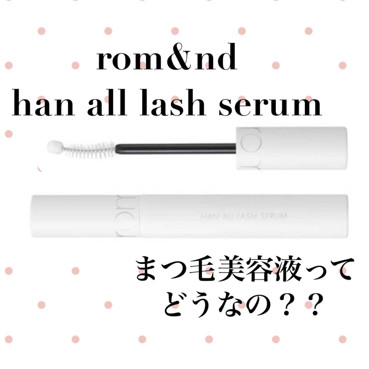【使った商品】rom&ndハンオールラッシュセラム【特徴】1,栄養供給+栄養キープ(ペプチド+アセチルテトラペプチド-3でケラチン活性化)2,目の低刺激検証完了(ph7)【使い心地】目に沁みないから、しっかり毛根まで塗れる高い水分感で塗りやす...