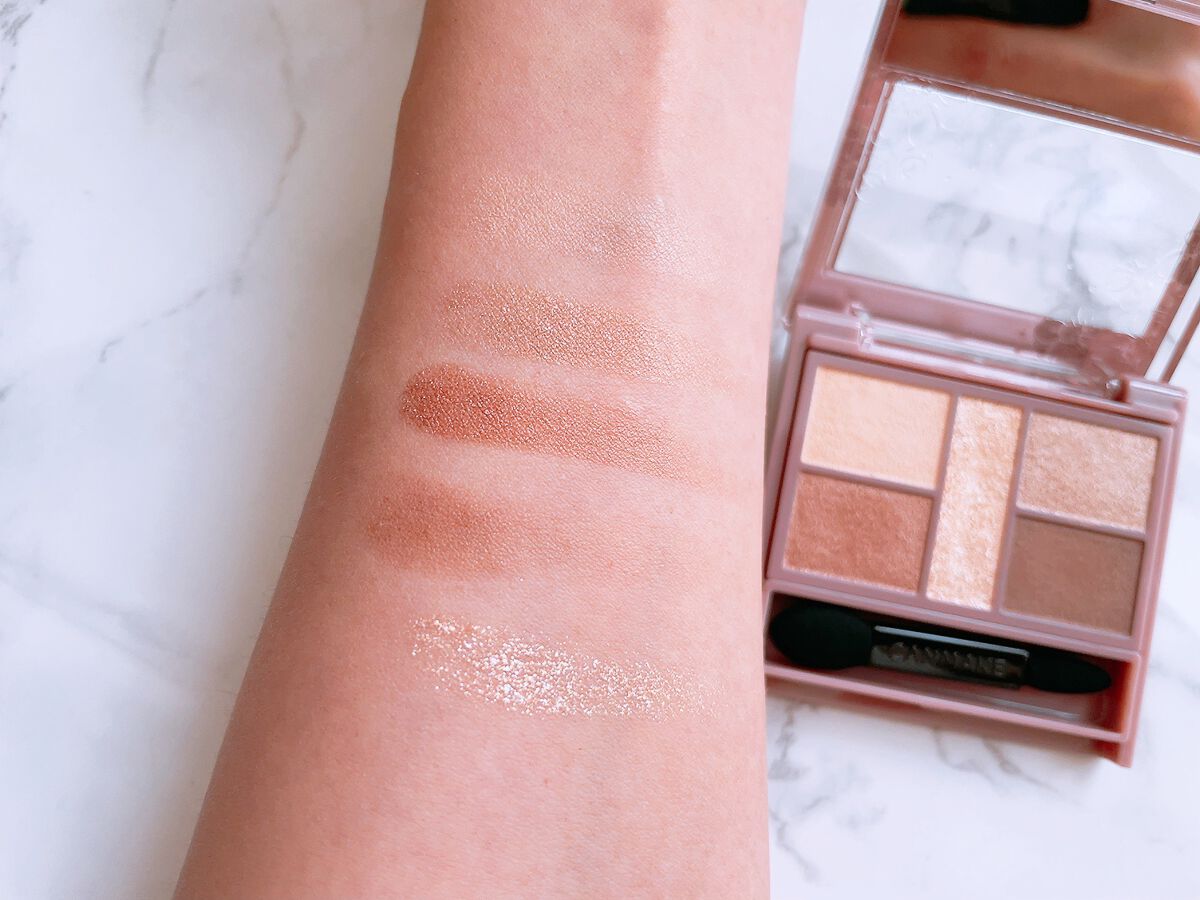 - 1枚のパレットで2つのスタイルが完成! 5色の欲ばりアイシャドウ♥ メインカラーを選んで2つのスタイルが楽しめる! A→B→D でスタイル1 A→C→D でスタイル2 繊細な粉質が、しっとりとまぶたに密着して色落ちを防ぎます。 透明感のあるキラうるトッピングジュエル(繊細ラメ)は、気分によってトッピング!