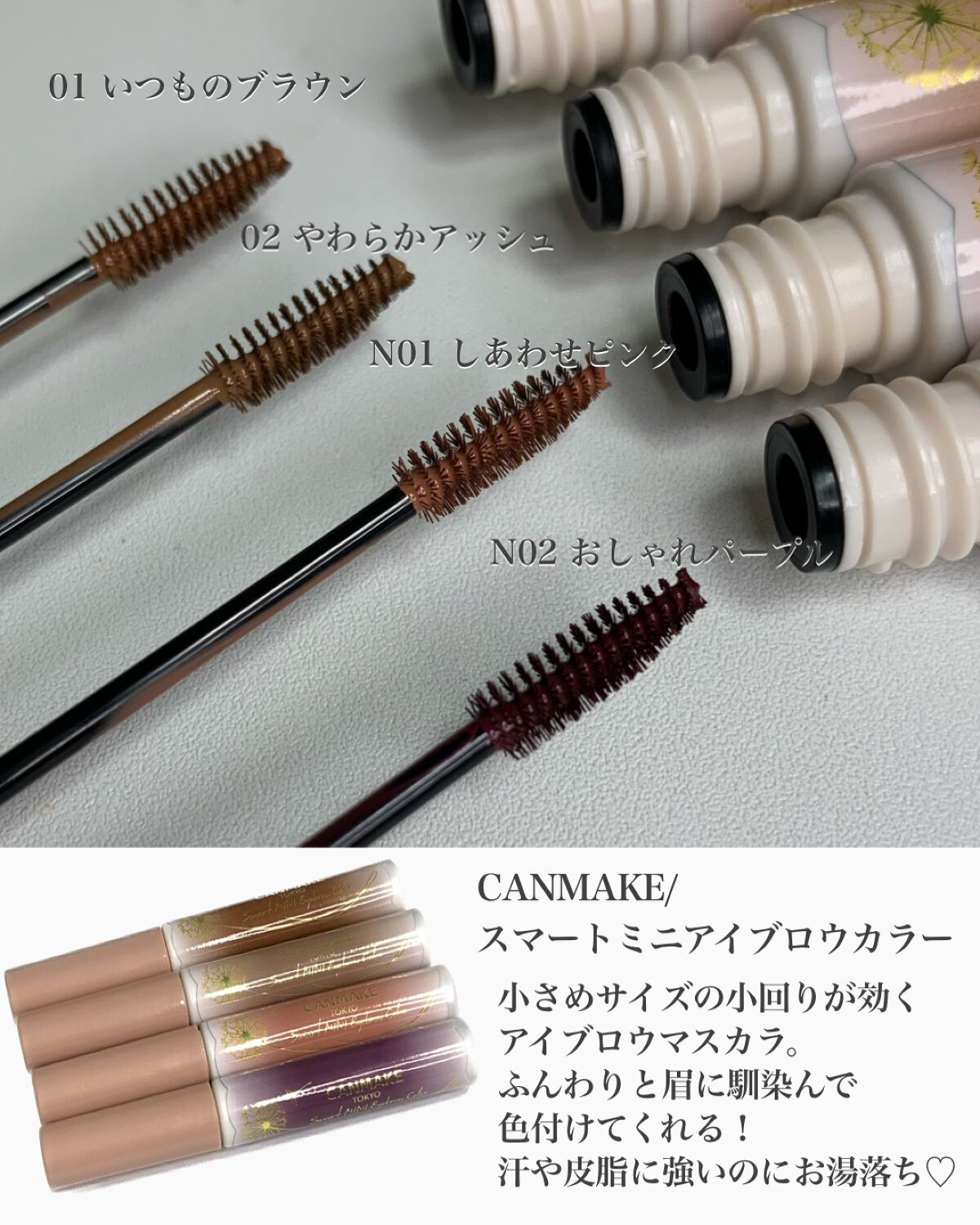 - ミニブラシでとにかく塗りやすい!! ふんわり仕上がる眉マスカラ 小回りの利くミニブラシがとっても塗りやすい眉マスカラ。 毛を1本1本逃さず、ナチュラルに染まります。 パリパリ感もなく、ふんわりとした自眉感のある仕上がりに! 地肌につきにくいのもうれしいポイント♡