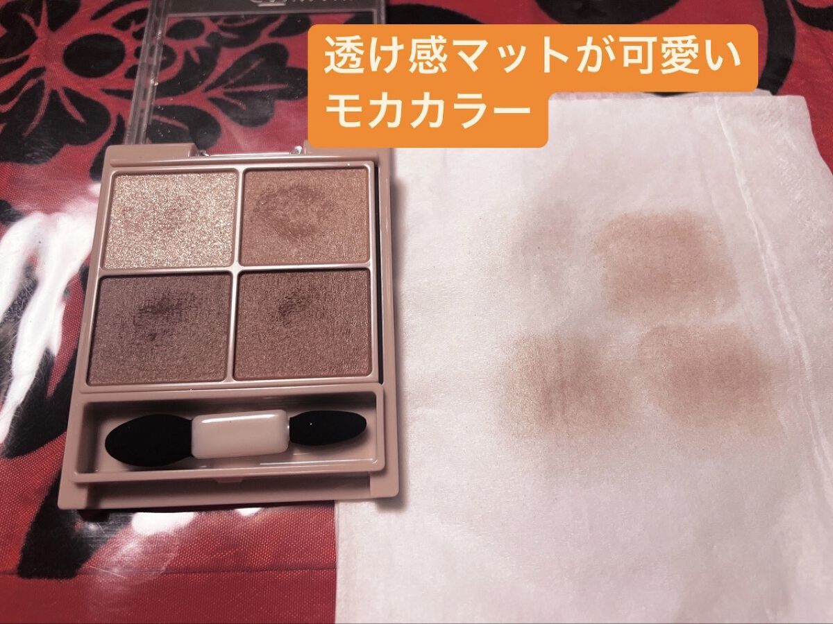 - シルキースフレアイズの姉妹品♡ 肌に溶け込むような透けマットシャドウ 透け感のある柔らかい仕上がりになるマット3色と、透け発色の繊細ラメ1色のパレットシャドウ♡ 完全マットアイや、ラメ×マットアイなど、メイクのパターンを楽しみましょう!