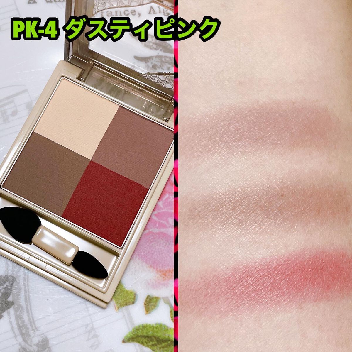 コーラルベース × ゴールドパール × ホワイトパールの3色の組み合わせです!! コーラル系がベースなので日本人の肌に とても馴染むと思います! こちらも薄付きなのでチークは勿論ハイライトとしても使用出来ます! 下瞼から目尻に掛けて塗ればマスク生活でも華やかな目元に仕上がります! コーラル系なので肌を白く見せてくれる色味だと思いました! 使用感も柔かく しっとりしているので保湿効果もあります! デイリーメイクに使いやすい色だと思いました。 目元とリップに重ねると顔全体が統一感が出るので可愛いく仕上げる事が出来ます♡ 写真よりも実際は色味が もっとしっかり出るのでその日の気分によって色の濃さを調整しやすいと思います!