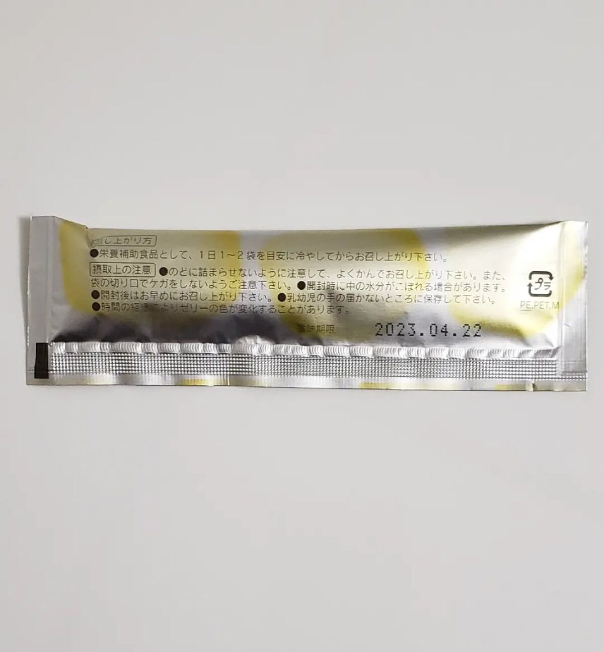 - おいしく手軽にキレイをチャージ! おやつ感覚でハリと弾力のある毎日に欠かせない人気のコラーゲンを補給できる、スティック型ゼリーです。 吸収が早い、分子の小さなコラーゲンが1袋にたっぷり1,000mg!さらにたった1gで約6リットルもの保水力をもつと言われるヒアルロン酸に、ビタミンB6も加えました。 コラーゲン特有の香りや味をできるだけカットした、まるでフルーツゼリーのようにみずみずしい、2つの定番味をご用意しました。個包装のスティックタイプだから、いつでもどこでも片手でおいしくコラーゲンをチャージできます。 年齢と共に気になる悩みも、おやつやデザート時にぷるんっと食べて解消を目指しましょう。 脂肪分ゼロ&1袋20kcalで、ダイエット中でも安心です。 ※申し訳ありませんが、サンプルはございません。 ●栄養補助食品として、1日1~2袋を目安に冷やしてからお召し上がり下さい。 ●切り口から袋の端を切り取り、下から押し出しながらお召し上がり下さい。 ※妊娠・授乳中の方は、お医者様とご相談のうえお召し上がりください。