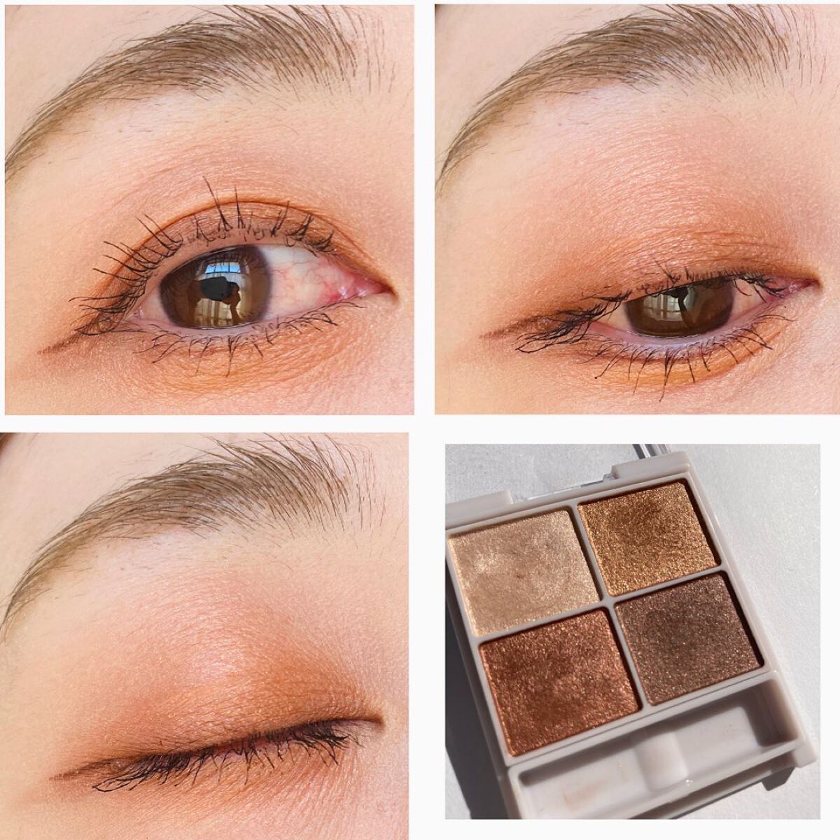 マットは肌に溶け込むような粉質でボソボソしません! シマーのしっとりした粉質も密着してくれて好き!!! 1番キラキラなのは右上のラメですね🍑💓でも粒が大きくないので、大人も使いやすいラメだと思います🥰 どの色使おうか迷うけど、どれ使っても本当可愛くて、自分が桃になったかのような🍑(笑)多幸感あふれるパレットです💘