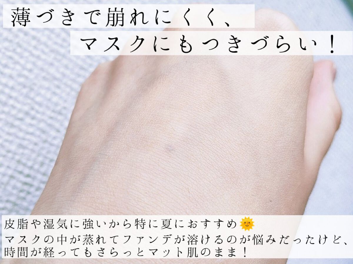 ソフトマットな仕上がりで皮脂、汗に強く、24時間崩れにくい*機能はそのままに、乾燥感を軽減! 薄くて軽い使用感✨ なめらかに伸ばしやすくて、素肌感ファンデが好きな人はとくに好きだと思う! 日本産椿オイル**を新配合!