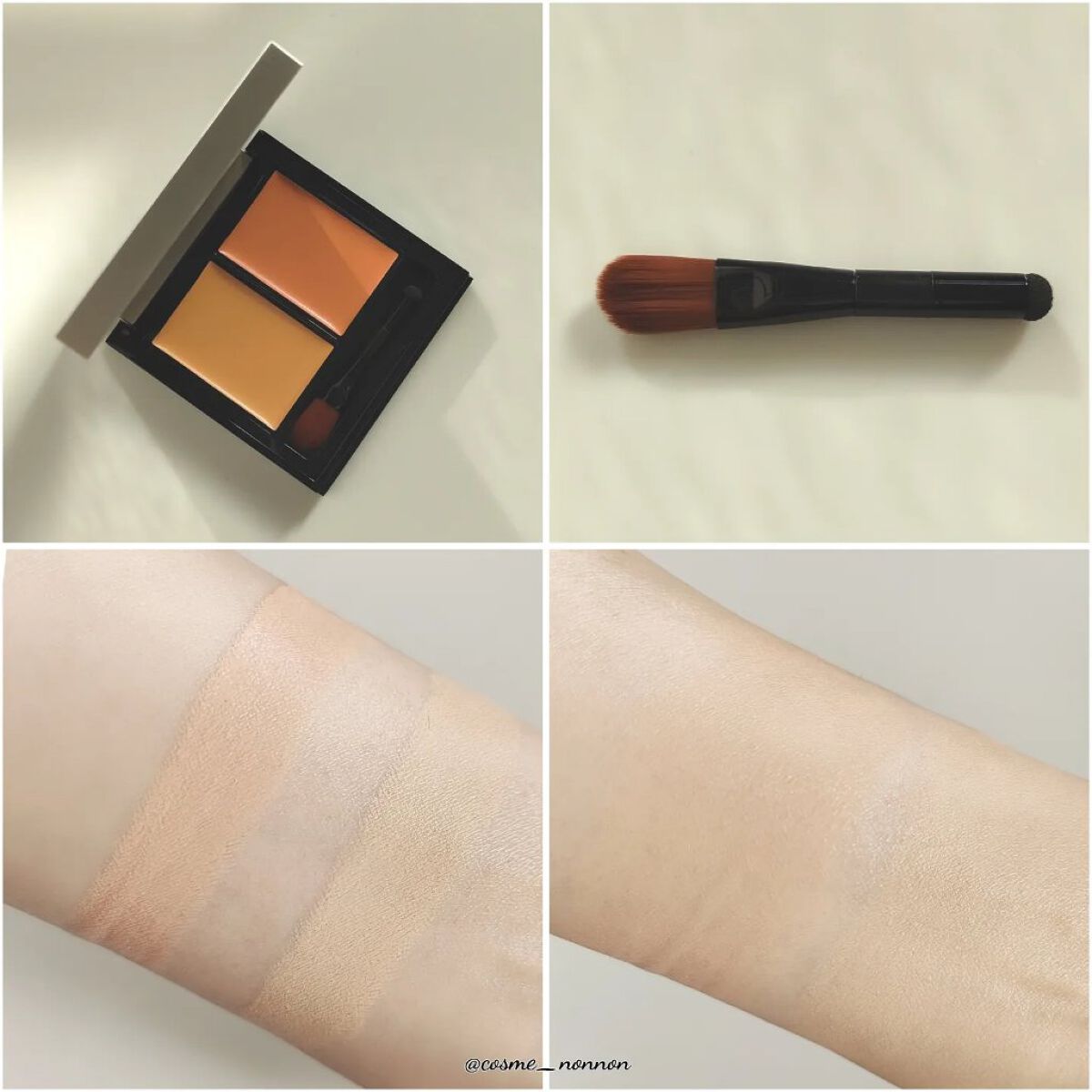 超時短でカバーしたいところが全てカバーできてしまい、感動しました💕 特にクマのカバー力が優秀でした。 オレンジ✖️ベージュのパワーがすごい✨ ライトベージュ&オレンジという色を頂いていて、少し明るいかな?と思ったのですが、自然にトーンアップしてくれる感じで使いやすいです。 時間がないけどしっかりカバーしたい!という方、おすすめですよ〜