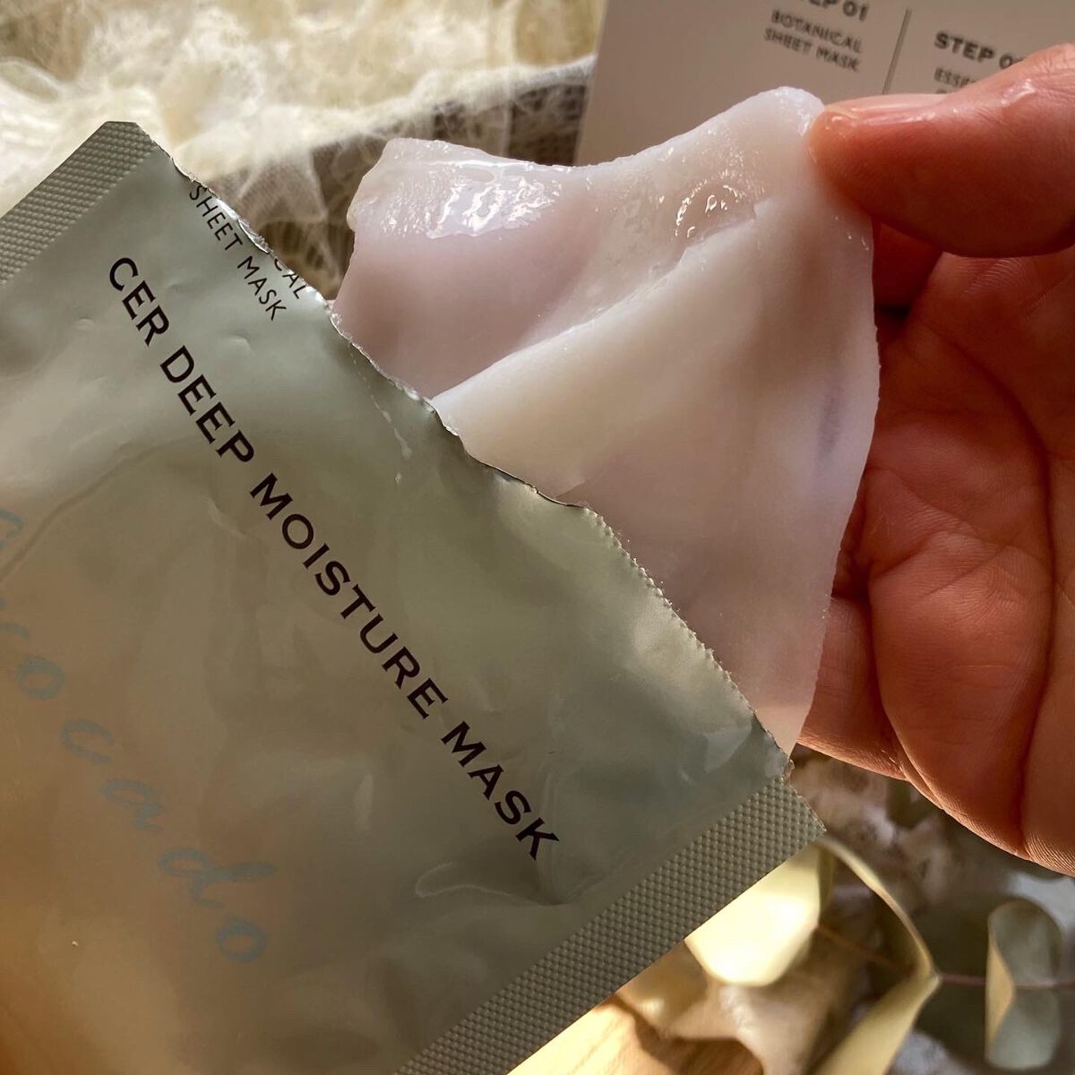 森のバターと呼ばれるアボガドオイル・アボガドエキスと、過酷な環境に負けない植物エキスを配合した濃厚な美容液マスクと高保湿ケアクリーム✨ もぉ香りが良くて💓 私はこの香り好きです😍 薄すぎないシートで、優しく包み込まれて香りも良くて心地良かったな♫