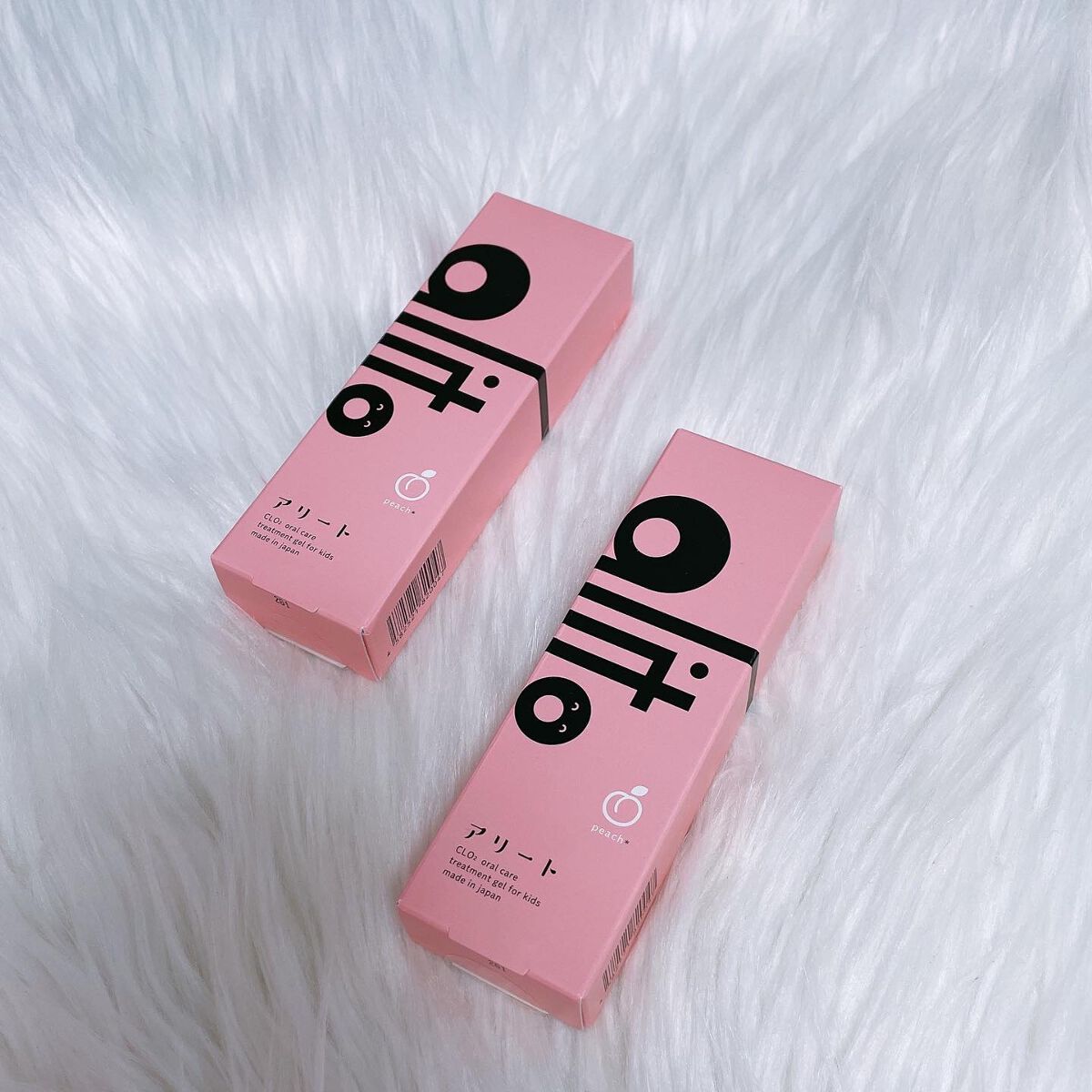 アリートは桃味でほんとスースーしない🥺 舐めてみたら美味しいんよね😋 高い口臭抑制作用で口臭予防·虫歯予防ができるから親としてはありがたい🙏 ジェルタイプだから泡立たないんだけど、きちんと磨けてるか見やすいし、歯の定着時間も長い✧ 磨いたあと口をすすがなくてもOKだし、すべてが食品成分だから飲み込んでもOK♡ 小さい頃からの使用もしやすいよ✧ ほんとにおすすめの歯磨き粉♡