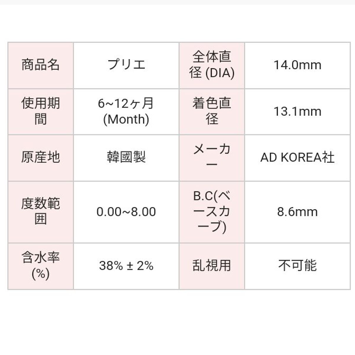 ADKoreaPlie・使用期限:6ヶ月・含水率:38%±2%・DIA:14.0mm・着色直径:13.1mm・B.C:8.6mm裸眼とほぼ同じサイズ感のナチュラルレンズ淡めの発色ながらしっかりと目元に透明感をプラスしてくれます...