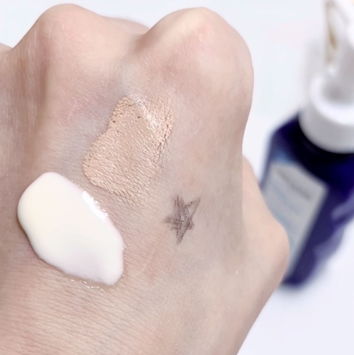 カラーコントロール効果と光拡散パウダーで肌を自然にトーンアップしながら、毛穴・小じわを簡単・瞬時にカバーする補正します。 皮脂吸着パウダーが余分な皮脂を抑制し、1 日中テカリや化粧くずれを防ぎます。 しっとりした、こし餡のようなテクスチャーですが、肌に伸ばすとサラサラな仕上がりになります。 半透明のベールをまとったようなソフトフォーカス効果で毛穴や薄いシミなどがふんわり目立たなくなります。 毛穴の凹凸も埋まるので均一な肌表面になりファンデーションをつけた後の肌の仕上がりもツルンとして綺麗です。 皮脂崩れを防いでくれるのでマスクで覆われる部分も化粧崩れしなくなりました。