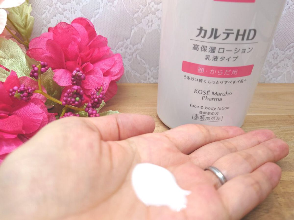 - 【高保湿フェイス&ボディローション】 顔にもからだにも。しっとりやわらか肌つづく。 信頼の保水有効成分「ヘパリン類似物質HD※」配合、低刺激処方の高機能フェイス&ボディローションです。 ヘパリン類似物質HDが、気温・湿度の変化で乾燥しやすいからだの肌のうるおい構造(角層ラメラ)を立て直し、しっとりやわらか肌に導きます。 2種のこだわりオイル配合で、しっとりするのにべたつかず、なめらかにのびひろがる使用感。敏感な肌でもまさつによるストレスがなく、全身をうるおいで満たします。 カルテHDシリーズとしては初めてお子さま(3歳以上)にもお使いいただける商品。 ・ボトルタイプ(220mL) ・ポンプタイプ(410mL) ・つめかえ用(370mL)の3種でラインアップ。 ご自身の保湿に、ご家族や大切なかたの保湿に。みずみずしくなめらかなうるおいが全身を包み込むフェイス&ボディローションです。 ※保水有効成分ヘパリン類似物質のこと <販売名:HD フェイスボディL>