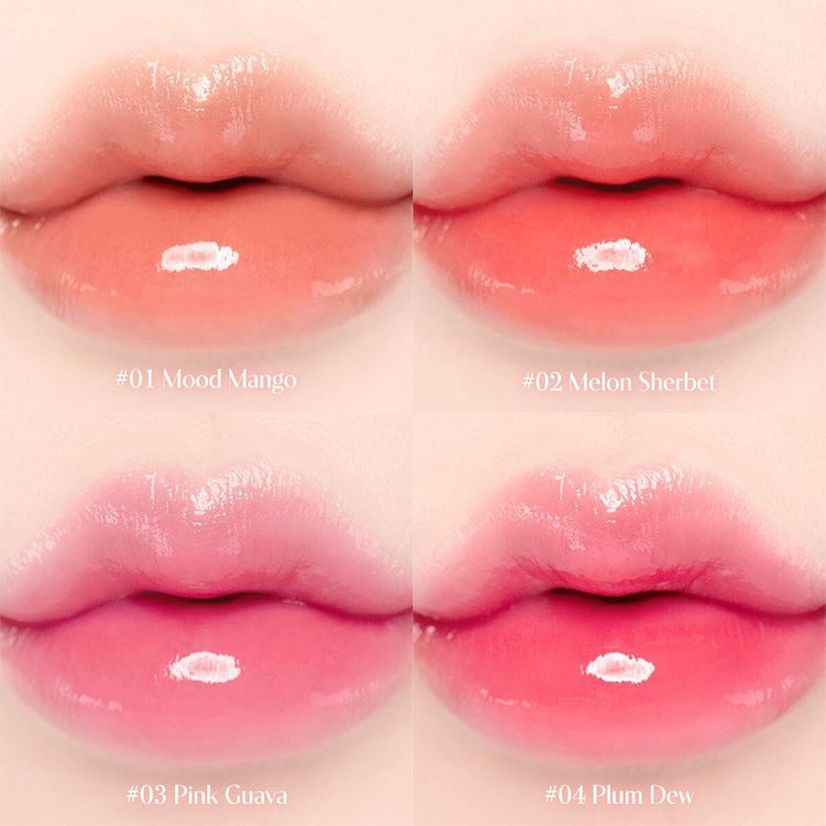 - <01 ムードマンゴー> 水、ジフェニルジメチコン、リンゴ酸ジイソステアリル、ビスジグリセリルポリアシルアジペート-2、ジグリセリン、水添ポリイソブテン、ダイマージリノール酸(フィトステリル/イソステアリル/セチル/ステアリル/ベヘニル)、ポリソルベート60、セチルPEG/PPG-10/1ジメチコン、DPG、ポリフェニルシルセスキオキサン、イソステアリン酸ソルビタン、ダイマージリノール酸ジイソステアリン酸ポリグリセリル-3、1,2-ヘキサンジオール、オクチルドデカノール、トリ(カプリル酸/カプリン酸)グリセリル、(アクリル酸ヒドロキシエチル/アクリロイルジメチルタウリンNa)コポリマー、セテアリルアルコール、酸化チタン、スクワラン、フェノキシエタノール、赤102、安息香酸ベンジル、エチルヘキシルグリセリン、黄4、香料、赤104(1)、水酸化Al、黄5、ポリアクリル酸アンモニウム、リナロール、BG、青1、塩化Na、ヘキシルシンナマル、トコフェロール <02 メロンシャーベット> 水、ジフェニルジメチコン、リンゴ酸ジイソステアリル、ビスジグリセリルポリアシルアジペート-2、ジグリセリン、水添ポリイソブテン、ダイマージリノール酸(フィトステリル/イソステアリル/セチル/ステアリル/ベヘニル)、ポリソルベート60、セチルPEG/PPG-10/1ジメチコン、DPG、ポリフェニルシルセスキオキサン、イソステアリン酸ソルビタン、ダイマージリノール酸ジイソステアリン酸ポリグリセリル-3、1,2-ヘキサンジオール、オクチルドデカノール、トリ(カプリル酸/カプリン酸)グリセリル、酸化チタン、(アクリル酸ヒドロキシエチル/アクリロイルジメチルタウリンNa)コポリマー、セテアリルアルコール、スクワラン、フェノキシエタノール、赤102、黄4、安息香酸ベンジル、エチルヘキシルグリセリン、赤104(1)、香料、水酸化Al、ポリアクリル酸アンモニウム、赤227、リナロール、BG、塩化Na、ヘキシルシンナマル、トコフェロール <03 ピンクグアバ> 水、ジフェニルジメチコン、リンゴ酸ジイソステアリル、ビスジグリセリルポリアシルアジペート-2、ジグリセリン、水添ポリイソブテン、ダイマージリノール酸(フィトステリル/イソステアリル/セチル/ステアリル/ベヘニル)、ポリソルベート60、セチルPEG/PPG-10/1ジメチコン、DPG、ポリフェニルシルセスキオキサン、イソステアリン酸ソルビタン、ダイマージリノール酸ジイソステアリン酸ポリグリセリル-3、1,2-ヘキサンジオール、オクチルドデカノール、トリ(カプリル酸/カプリン酸)グリセリル、(アクリル酸ヒドロキシエチル/アクリロイルジメチルタウリンNa)コポリマー、セテアリルアルコール、スクワラン、フェノキシエタノール、酸化チタン、赤104(1)、安息香酸ベンジル、エチルヘキシルグリセリン、黄5、香料、水酸化Al、ポリアクリル酸アンモニウム、リナロール、赤227、BG、青1、ヘキシルシンナマル、トコフェロール <04 プラムデュー> 水、ジフェニルジメチコン、リンゴ酸ジイソステアリル、ビスジグリセリルポリアシルアジペート-2、ジグリセリン、水添ポリイソブテン、ダイマージリノール酸(フィトステリル/イソステアリル/セチル/ステアリル/ベヘニル)、ポリソルベート60、セチルPEG/PPG-10/1ジメチコン、DPG、ポリフェニルシルセスキオキサン、イソステアリン酸ソルビタン、ダイマージリノール酸ジイソステアリン酸ポリグリセリル-3、1,2-ヘキサンジオール、オクチルドデカノール、トリ(カプリル酸/カプリン酸)グリセリル、(アクリル酸ヒドロキシエチル/アクリロイルジメチルタウリンNa)コポリマー、セテアリルアルコール、酸化チタン、スクワラン、フェノキシエタノール、赤104(1)、黄5、赤227、安息香酸ベンジル、エチルヘキシルグリセリン、香料、黄4、水酸化Al、ポリアクリル酸アンモニウム、リナロール、BG、ヘキシルシンナマル、塩化Na、トコフェロール <05 モーブベリー> 水、ジフェニルジメチコン、リンゴ酸ジイソステアリル、ビスジグリセリルポリアシルアジペート-2、ジグリセリン、水添ポリイソブテン、ダイマージリノール酸(フィトステリル/イソステアリル/セチル/ステアリル/ベヘニル)、ポリソルベート60、セチルPEG/PPG-10/1ジメチコン、DPG、ポリフェニルシルセスキオキサン、イソステアリン酸ソルビタン、ダイマージリノール酸ジイソステアリン酸ポリグリセリル-3、1,2-ヘキサンジオール、オクチルドデカノール、トリ(カプリル酸/カプリン酸)グリセリル、(アクリル酸ヒドロキシエチル/アクリロイルジメチルタウリンNa)コポリマー、セテアリルアルコール、酸化チタン、スクワラン、フェノキシエタノール、赤227、黄5、安息香酸ベンジル、エチルヘキシルグリセリン、香料、水酸化Al、ポリアクリル酸アンモニウム、リナロール、黄4、BG、ヘキシルシンナマル、塩化Na、トコフェロール <06 ローズアップル> 水、ジフェニルジメチコン、リンゴ酸ジイソステアリル、ビスジグリセリルポリアシルアジペート-2、ジグリセリン、水添ポリイソブテン、ダイマージリノー