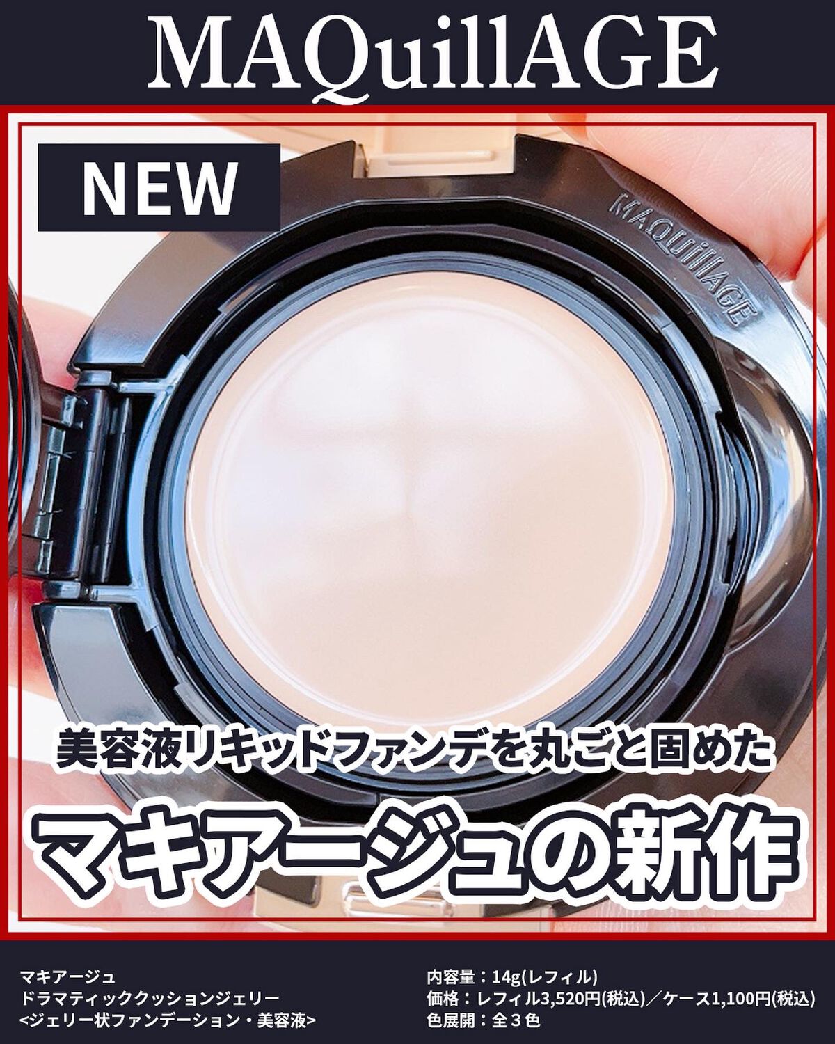 カバーだけじゃない!極上つるん肌◎ マキアージュの毛穴レス美容液リキッドファンデを丸ごと固めた新しいクッションファンデ。 ☑︎密着カバー×スキンケア乳化技術 ポンポンするだけで角層までうるおいが浸透。ジェリー膜が均一に肌をカバー&ピタッと密着...