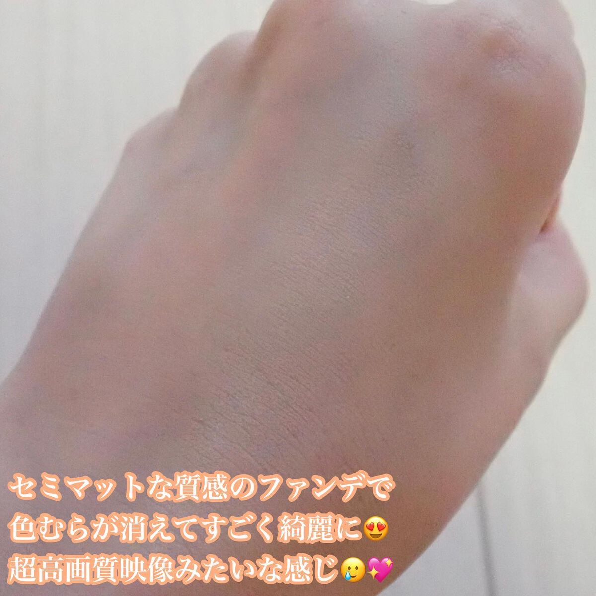 スキンケア成分がパワーアップし、くすみにくく つけたての仕上がりをキープしてくれるんだって😍 密着感の高い仕上がりで、手持ちのブラシを使用して 肌に乗せた後、ティッシュで軽く抑えるとムラなく 高画質のような仕上がりになってくれました🙆♀️ カバー力も高く、毛穴やニキビ跡を自然に 隠してくれて助かる〜👏 これ本当にすごくて、朝7時に家を出て20時に 帰ってくるのがデフォルトなわたしでも、帰って マスクを外した時に変なよれ方なく綺麗な色が 保たれていて安心感がすごかった😭🫶 乾燥肌用はややピンクみが強いらしいので、ピンク系の 色が欲しい方にもおすすめ!