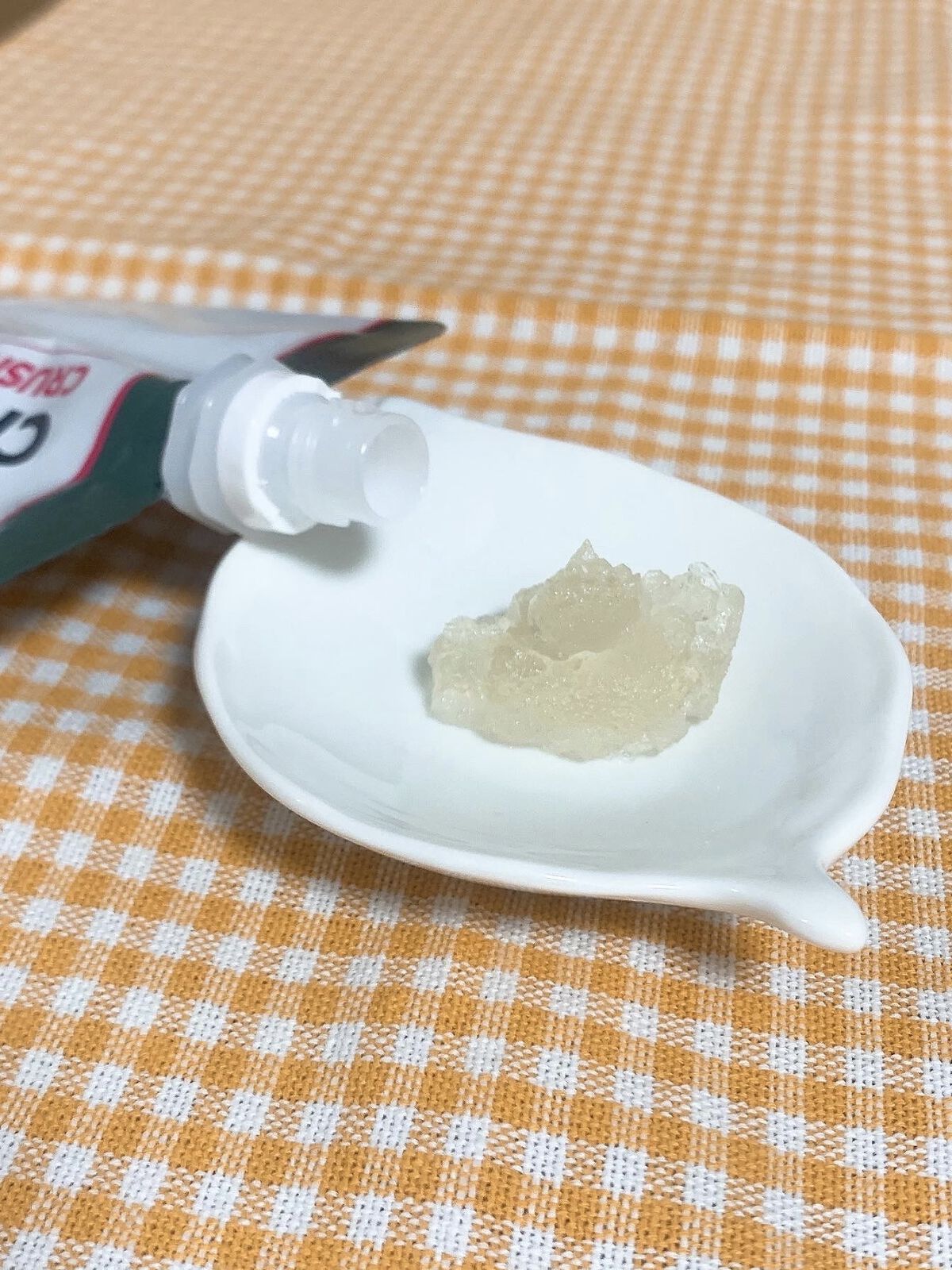 ゼリー状につぶつぶのスクラブ入り ゼリーはホロホロする感触 鼻がツルツルになった 無香料・無着色 CICA(ツボクサエキス)とマンナンスクラブのジェリー洗顔です🛁𓈒𓂂𓏸 スクラブは小さく硬くないので全く痛くないです! ゼリーは肌への密着度が低く、ホロホロ手から落ちやすいので、落とさないように肌にのせてクルクルします。 特に角栓でガサガサしやすい鼻がツルツルになったのが分かりやすかったです!