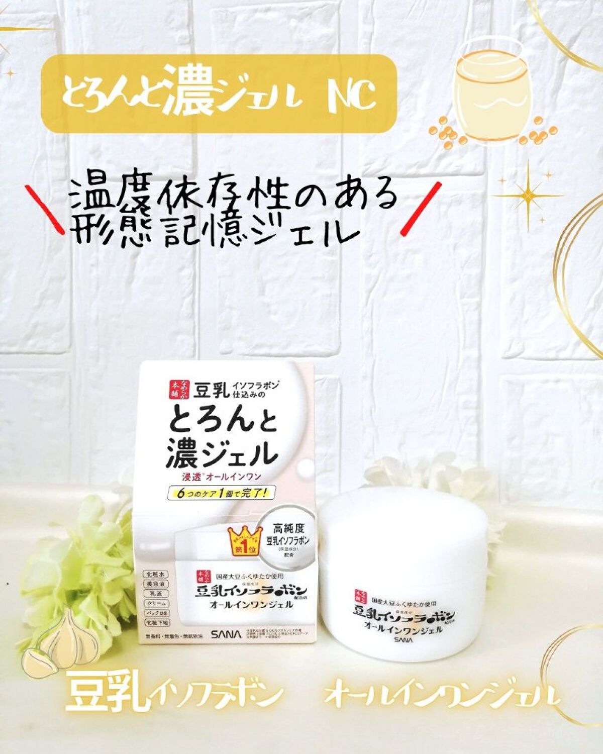 - 「なめらか本舗」のとろんと濃ジェルが世界新開発※1の成分「高純度豆乳イソフラボン※2」を配合してリニューアル!1個で6役、ぷるんとすべすべの絹ごし肌へ。 【おすすめポイント】 1.豆乳発酵液※2に加え、高純度豆乳イソフラボン※2を新配合✨豆乳由来の保湿成分をWで配合し、もっとなめらか美肌に🎵 2.温度依存性のある形態記憶ジェルがとろけるようになじみ、お肌にぐんぐん浸透※3!べたつかず、使用感もアップ🌟 "とろんと濃い形態記憶ジェル" 豆乳ににがりを加えると固まるのは、イオンの力のおかげ。とろんと濃ジェルのとろんと感も、イオンの力を利用しています。 3."化粧水・美容液・乳液・クリーム・パック効果・化粧下地" の6役がこれひとつでOK!忙しい朝にもぴったりです。 ※1 化粧品原料として世界で初めてINCI名(国際化粧品表示名称)を取得しました ※2 保湿成分 ※3 角層まで