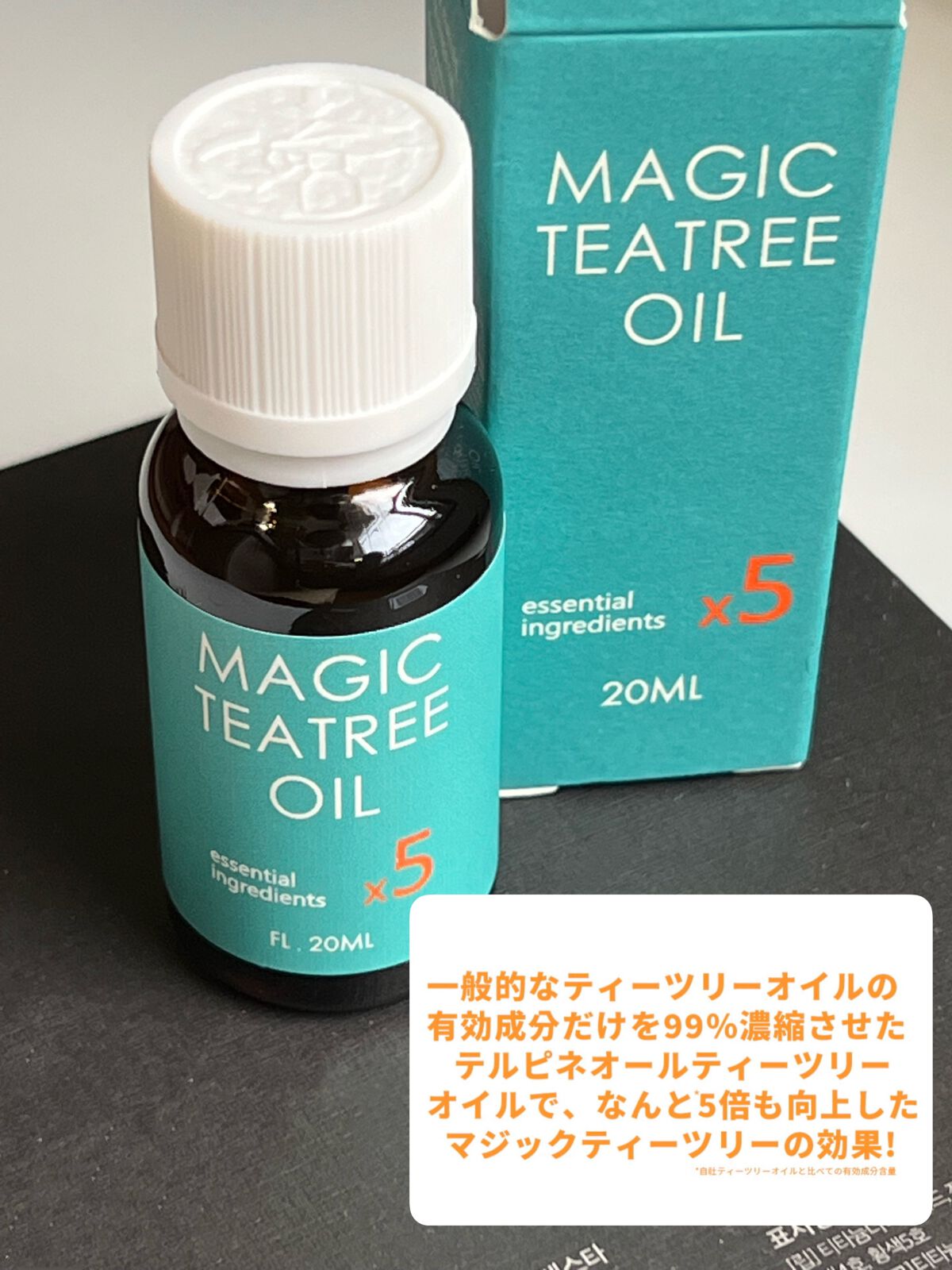 - マジックティーツリーオイルは、乾燥や皮脂による肌悩みをスポットケアし、整える商品です。ブラン代表の整肌成分である4‐テルピネオールで肌トラブルの原因の1つである皮脂を素早くケアします。 【このような方におススメ】 ✔乾燥による肌悩みが気になる方 ✔過度な皮脂と油分が気になる方 ✔べたつきのないスキンケアを探されている方 ✔肌荒れを防ぎたい方 ✔年齢性別肌タイプ関係なく使用できる商品を探されている方 【使用方法】 ①洗顔後、コットンに適量を取り、軽くふき取った後馴染ませます。 ②気になる部分の肌をきれいに洗顔後、トナー→クリームの順でお肌を整えます。 ③綿棒に1~2滴落とし、気になる部分に塗ります。 経過を見て朝晩のスキンケアの最後の段階に塗ることを繰り返します。
