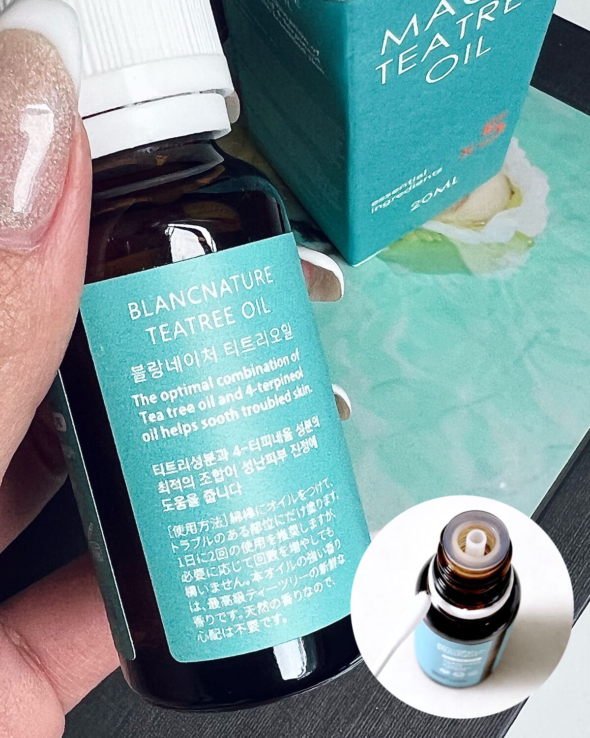 \その赤みにスーッと1滴/【BLANCマジックティーツリーオイル】韓国ビューティーアワード2022でフェイスオイル部門受賞し、Qoo10でもレビュー数1万超えという人気のオイル🌱リピ2本目!キャップを開けるとティーツリーの香りガツン!皮脂トラ...