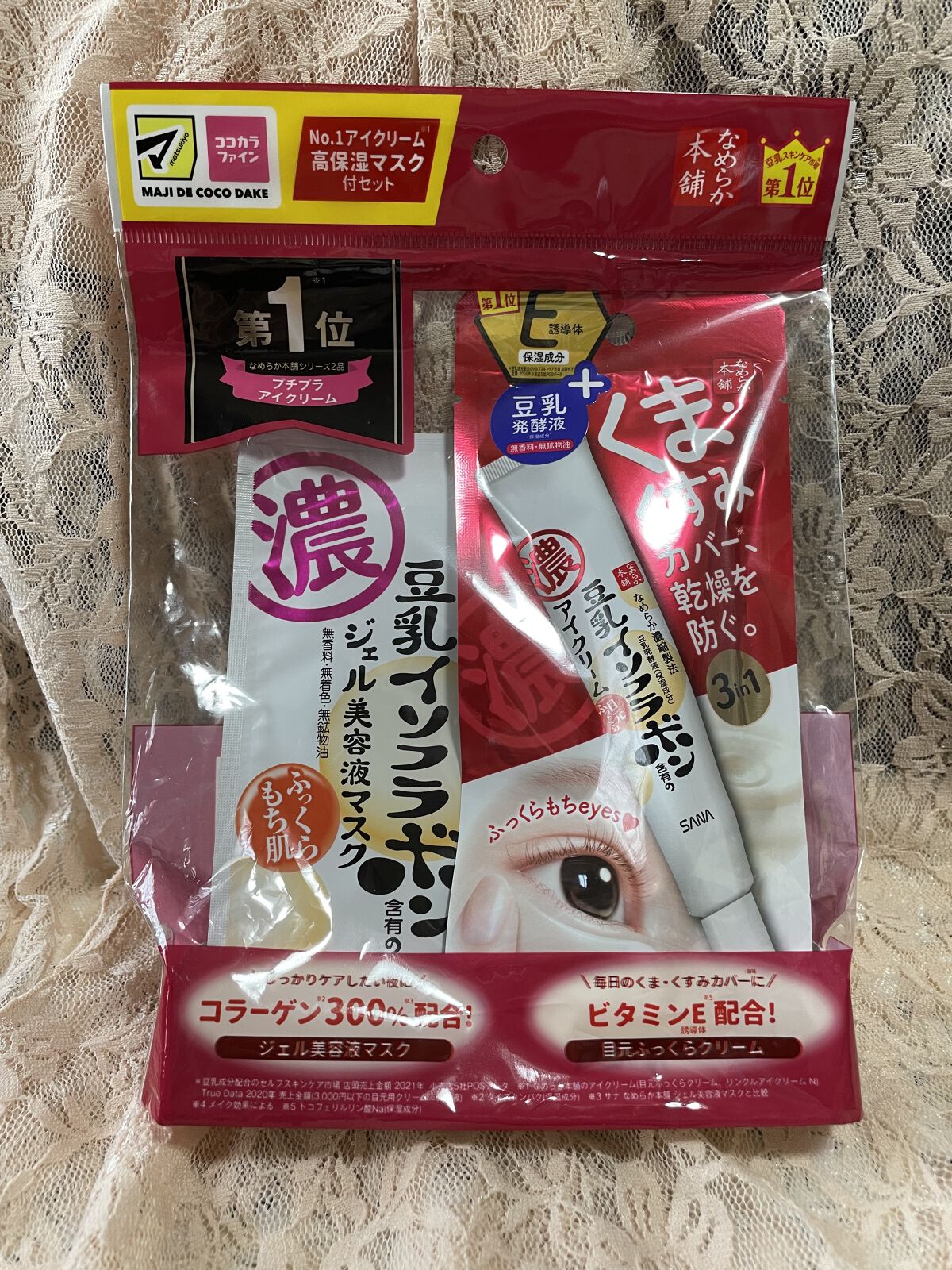 - <目元ふっくらクリーム NC> 水、グリセリン、スクワラン、テトラエチルヘキサン酸ペンタエリスリチル、BG、テトラ(ヒドロキシステアリン酸/イソステアリン酸)ジペンタエリスリチル、ジメチコン、ベヘニルアルコール、PEG-150、ジイソステアリン酸ポリグリセリル-2、ジグリセリン、ミツロウ、イソステアリン酸PEG-60グリセリル、ペンチレングリコール、ステアリン酸グリセリル、トコフェリルリン酸Na、トリメチルシロキシケイ酸、豆乳イソフラボン、豆乳発酵液、(アクリレーツ/アクリル酸アルキル(C10-30))クロスポリマー、エタノール、エチルヘキシルグリセリン、キサンタンガム、シクロデキストリン、ダイズイソフラボン、ダイズタンパク、ダイズ種子エキス、トコフェロール、トリ(カプリル酸/カプリン酸)グリセリル、ポリソルベート80、マカデミア種子油、ラウリルカルバミン酸イヌリン、レシチン、酸化チタン、水酸化Na、フェノキシエタノール、メチルパラベン <目元ふっくらクリーム【旧】> 水、BG、グリセリン、トリエチルヘキサノイン、テトラ(ヒドロキシステアリン酸/イソステアリン酸)ジペンタエリスリチル、ジメチコン、ベヘニルアルコール、テトラエチルヘキサン酸ペンタエリスリチル、ミツロウ、ラウロイルグルタミン酸ジ(オクチルドデシル/フィトステリル/ベヘニル)、マカデミア種子油、ジフェニルシロキシフェニルトリメチコン、イソステアリン酸PEG-60グリセリル、ステアリン酸グリセリル、トコフェリルリン酸Na、豆乳発酵液、ダイズ種子エキス、ダイズタンパク、(アクリル酸ヒドロキシエチル/アクリロイルジメチルタウリンNa)コポリマー、エタノール、エチルヘキシルグリセリン、カンゾウ根エキス、ジメチコンクロスポリマー、スクワラン、セルロースガム、トコフェロール、ポリソルベート60、マイカ、酸化チタン、フェノキシエタノール、メチルパラベン