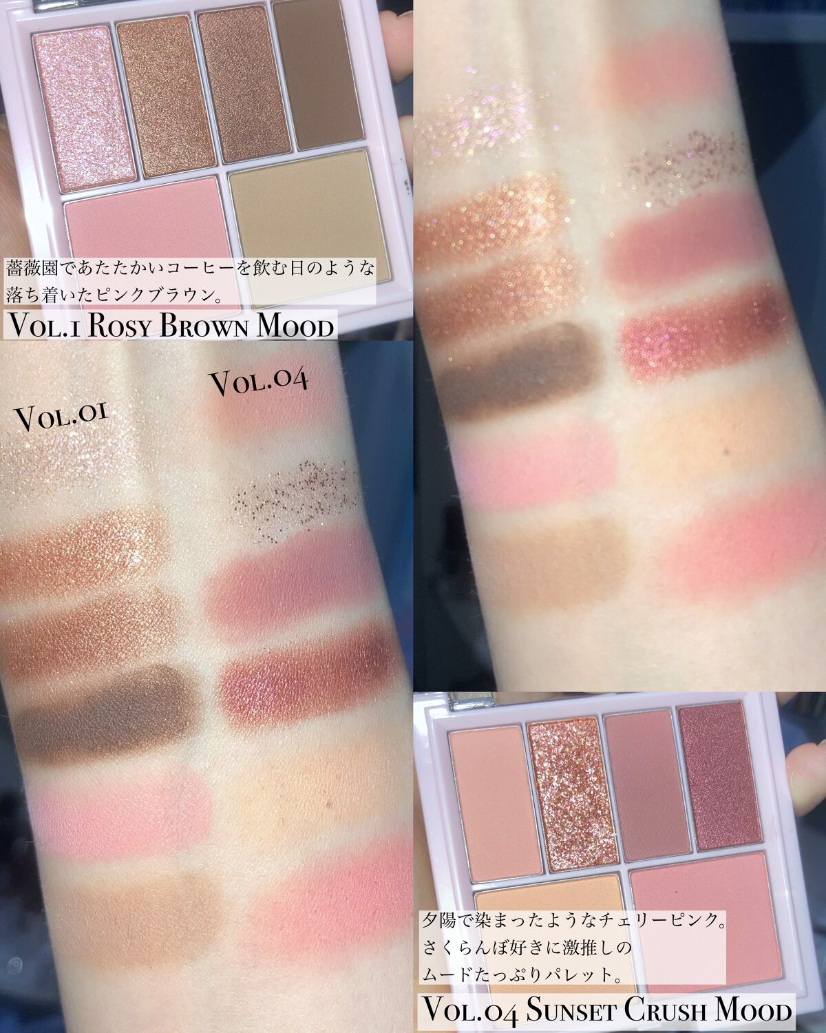 マルチに使えるパレットが可愛い🥰 粉質はわりとしっとりしてる気がして塗りやすかったです✨ 使用した写真では VOL.02 ピーチコーラルムードを使用 大人っぽく仕上がるカラーだと思います☺️ 見た目も可愛いのでプレゼントにもぴったりです☺️