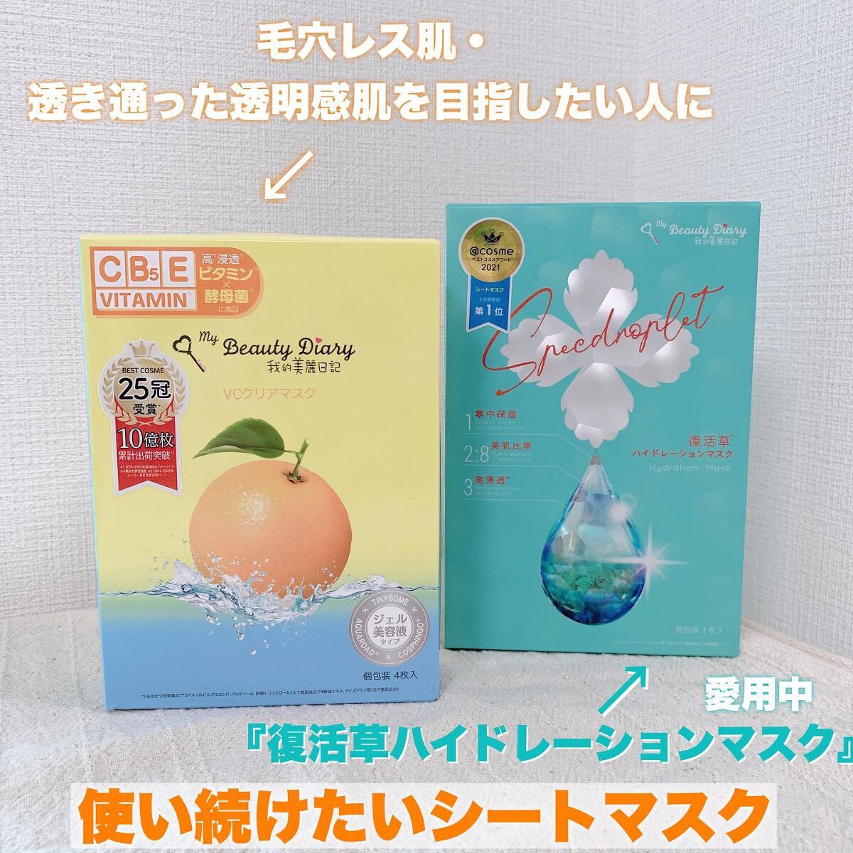 ◇我的美麗日記◇①毛穴ケアができて引き締まった肌になりたい!→「VCクリアマスク」がオススメ②乾燥が気になるのでしっかり保湿をしたい!→「復活草ハイドレーションマスク」がオススメ【VCクリアマスク】大人気シートマスクの我的美麗日記シリーズから...