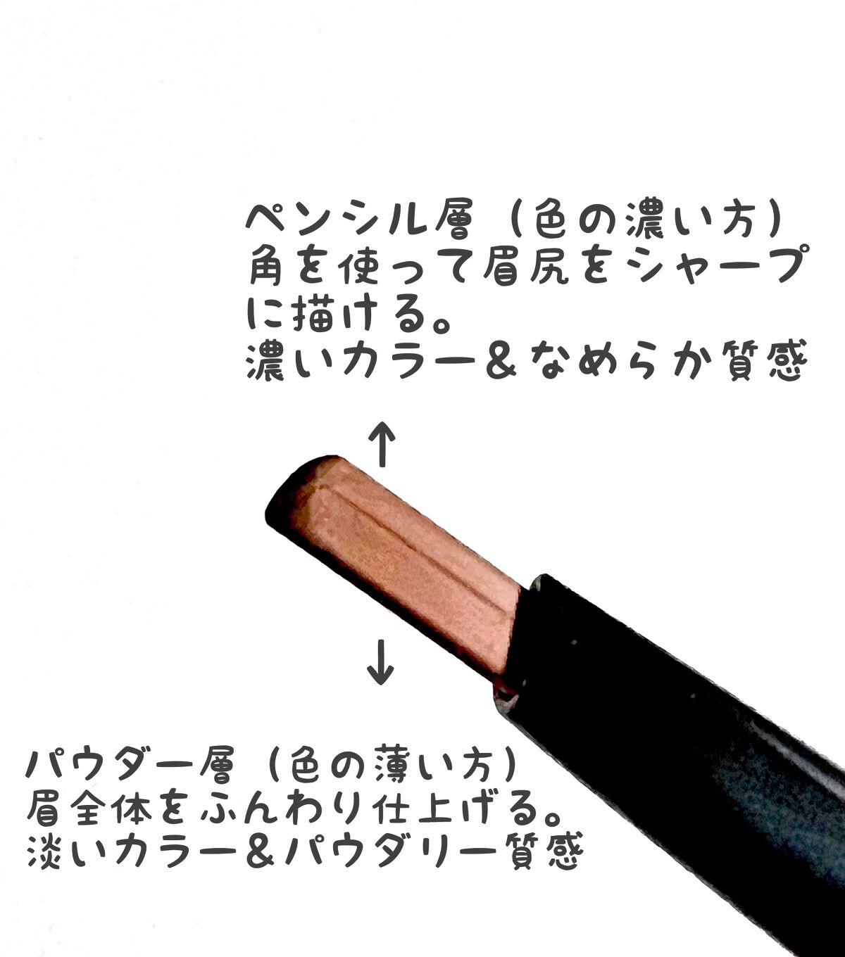 ケイトさまよりご提供いただきました!眉ペンシルなのですが、パウダーを固めたようなペンシルでブラシでぼかすことによって、パウダリー眉に変化するという不器用な私にありがたいアイテムです。一方が、繰り出し式の「楕円芯」反対側のキャップを外すと「スク...