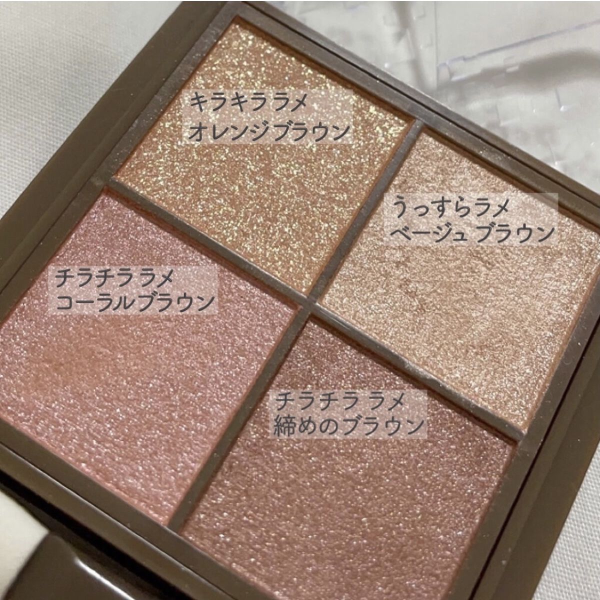 - <01 ウォームコーラル> リンゴ酸ジイソステアリル、トリイソステアリン酸ポリグリセリル-2、トリエチルヘキサノイン、メタクリル酸メチルクロスポリマー、窒化ホウ素、ミリスチン酸亜鉛、シリカ、ヘキサ(ヒドロキシステアリン酸/ステアリン酸/ロジン酸)ジペンタエリスリチル、ペンチレングリコール、ビスジグリセリルポリアシルアジペート-2、フェノキシエタノール、メチルパラベン、トコフェロール、スクワラン、オリーブ果実油、ホホバ種子油、マカデミア種子油、カニナバラ果実油、タルク、マイカ、合成フルオロフロゴパイト、酸化チタン、酸化鉄、ホウケイ酸(Ca/チタン)、酸化スズ、赤202、水酸化Al <02 ローズクォーツ> リンゴ酸ジイソステアリル、トリイソステアリン酸ポリグリセリル-2、トリエチルヘキサノイン、メタクリル酸メチルクロスポリマー、窒化ホウ素、ミリスチン酸亜鉛、シリカ、ヘキサ(ヒドロキシステアリン酸/ステアリン酸/ロジン酸)ジペンタエリスリチル、ペンチレングリコール、ビスジグリセリルポリアシルアジペート-2、フェノキシエタノール、メチルパラベン、トコフェロール、スクワラン、オリーブ果実油、ホホバ種子油、マカデミア種子油、カニナバラ果実油、タルク、合成フルオロフロゴパイト、マイカ、酸化チタン、酸化鉄、ホウケイ酸(Ca/チタン)、グンジョウ、赤202、酸化スズ、赤226、黄4、水酸化Al、マンガンバイオレット <03 ブロンズレッド> リンゴ酸ジイソステアリル、トリイソステアリン酸ポリグリセリル-2、トリエチルヘキサノイン、メタクリル酸メチルクロスポリマー、窒化ホウ素、ミリスチン酸亜鉛、シリカ、ヘキサ(ヒドロキシステアリン酸/ステアリン酸/ロジン酸)ジペンタエリスリチル、ペンチレングリコール、ビスジグリセリルポリアシルアジペート-2、フェノキシエタノール、メチルパラベン、トコフェロール、スクワラン、オリーブ果実油、ホホバ種子油、マカデミア種子油、カニナバラ果実油、タルク、マイカ、合成フルオロフロゴパイト、酸化鉄、酸化チタン、ホウケイ酸(Ca/チタン)、グンジョウ、赤202、水酸化Al、酸化スズ <04 キャメルブラウン> リンゴ酸ジイソステアリル、トリイソステアリン酸ポリグリセリル-2、トリエチルヘキサノイン、メタクリル酸メチルクロスポリマー、窒化ホウ素、ミリスチン酸亜鉛、シリカ、ヘキサ(ヒドロキシステアリン酸/ステアリン酸/ロジン酸)ジペンタエリスリチル、ペンチレングリコール、ビスジグリセリルポリアシルアジペート-2、フェノキシエタノール、メチルパラベン、トコフェロール、スクワラン、オリーブ果実油、ホホバ種子油、マカデミア種子油、カニナバラ果実油、タルク、マイカ、合成フルオロフロゴパイト、酸化鉄、酸化チタン、ホウケイ酸(Ca/チタン)、赤226、酸化スズ、水酸化Al