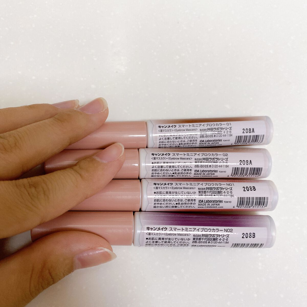 - <02 やわらかアッシュ> 水、アクリレーツコポリマー、エタノール、グリセリン、シリカ、ペンチレングリコール、セルロースガム、ジグリセリン、フェノキシエタノール、プルラン、ベントナイト、三リン酸5Na、シメチコン、パンテノール、BG、ステアリン酸ソルビタン、ステアリン酸グリセリル、加水分解シルク、ダイズ芽エキス、オレイン酸ポリグリセリル-10、オランダガラシ葉/茎エキス、酸化鉄、タルク、酸化チタン、アルミナ <03 さくらブラウン> 水、アクリレーツコポリマー、エタノール、グリセリン、シリカ、ペンチレングリコール、セルロースガム、ジグリセリン、フェノキシエタノール、プルラン、ベントナイト、三リン酸5Na、シメチコン、パンテノール、BG、ステアリン酸ソルビタン、ステアリン酸グリセリル、加水分解シルク、ダイズ芽エキス、オレイン酸ポリグリセリル-10、オランダガラシ葉/茎エキス、酸化チタン、酸化鉄、タルク、マイカ、グンジョウ、アルミナ <N01 しあわせピンク> 水、アクリレーツコポリマー、エタノール、グリセリン、シリカ、ペンチレングリコール、セルロースガム、ジグリセリン、フェノキシエタノール、プルラン、ベントナイト、三リン酸5Na、シメチコン、パンテノール、BG、ステアリン酸ソルビタン、ステアリン酸グリセリル、加水分解シルク、ダイズ芽エキス、オレイン酸ポリグリセリル-10、オランダガラシ葉/茎エキス、タルク、酸化チタン、酸化鉄、赤226、アルミナ <N02 おしゃれパープル> 水、アクリレーツコポリマー、エタノール、グリセリン、シリカ、ペンチレングリコール、セルロースガム、ジグリセリン、フェノキシエタノール、プルラン、ベントナイト、三リン酸5Na、シメチコン、パンテノール、BG、ステアリン酸ソルビタン、ステアリン酸グリセリル、加水分解シルク、ダイズ芽エキス、オレイン酸ポリグリセリル-10、オランダガラシ葉/茎エキス、酸化鉄、タルク、グンジョウ、酸化チタン、合成フルオロフロゴパイト、アルミナ