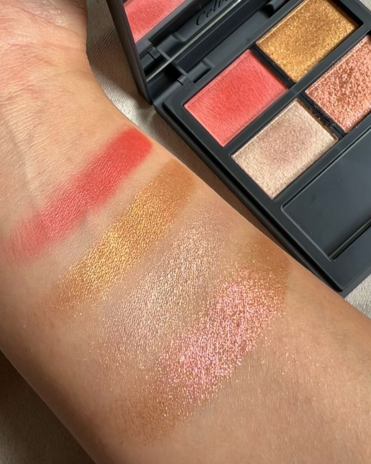 celvokeヴァティックアイパレット03ネオテラコッタcelvokeの代表格でもあるテラコッタカラーのアイシャドウパレット。粒子が細かくしっとりとして、ムラなくジュワッと染まるような高発色の粉質。(左上)マットなキャメルカラー(右上)マット...