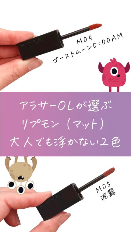 ...#KATE#リップモンスタースフレマットM04ゴーストムーン0:00AM...このカラー大好き!一度塗りだと黄みが強くて、重ねると深みとブラウンみが増す。私これ使うと肌がすーごく明るく見えるからヘビロテしてる😮💨💖....#ケイト#ケ...