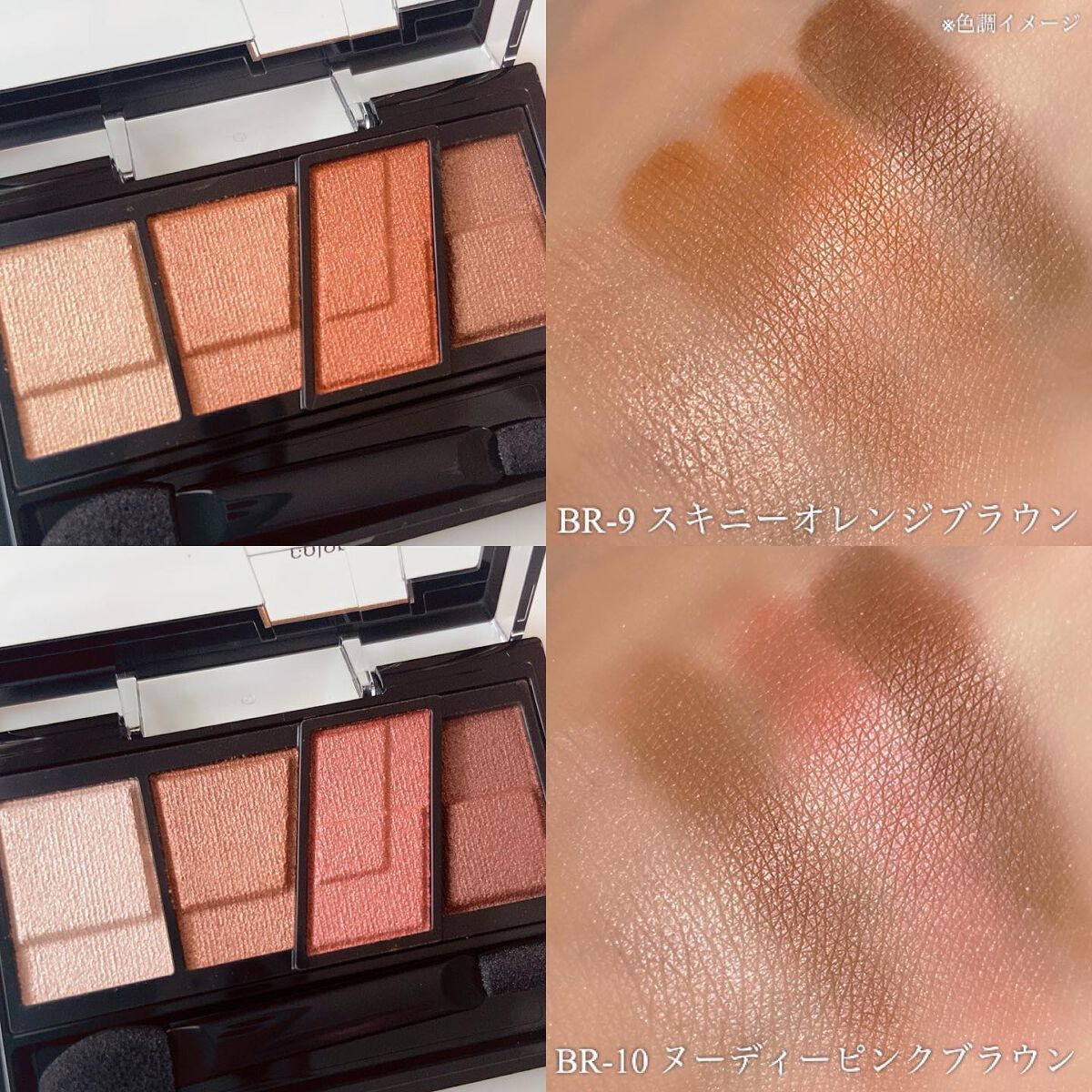 - カラーニュアンスシェードを目尻に入れるだけで目幅を大きく見せ※、抜け感のある明るい大きな目元に仕上るブラウンアイシャドウ。 ブラウン×カラーニュアンスの4色セット。※メイクアップ効果