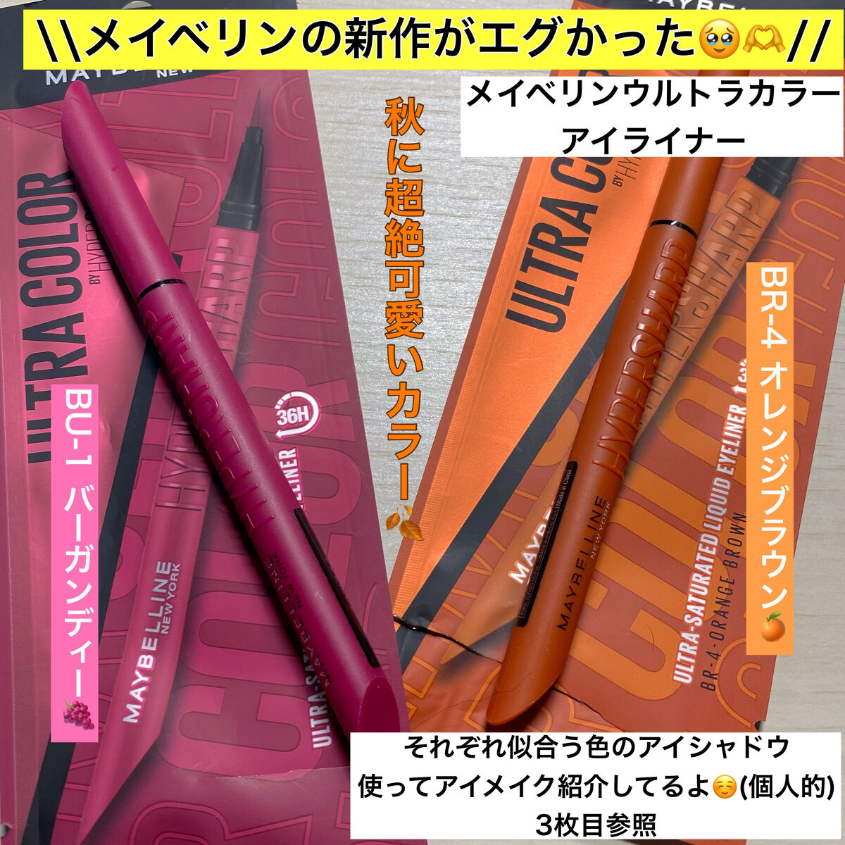 今回はメイベリンウルトラカラーアイライナー商品紹介と使用感です✨インパクトのあるレッドカラー❗️角度によりブラウンの深みもありますしっかりした筆なので細く引きやすい滲みにくいのも⭕️🦋カラーライナーが好きなので 購入して良かったと思う商品でし...