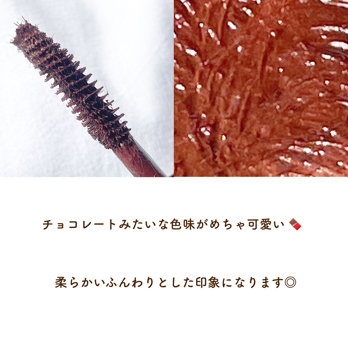 カラーはナチュラルブラウンを使っています。 ブラシが細くて小さいので地肌に付きにくく、のっぺりとした眉を防ぐことができます🙆♀️ 細いブラシでふわっと乗せることができるので簡単にフワフワ眉を作れます。 私が使っているカラーは黒髪さんでも茶髪さんでも使いやすいカラーになっています。 眉マスカラって落ちやすい印象があったのですが、これは夏の汗にも耐えてくれたので信頼している商品です! 明るすぎず暗すぎずのカラーなので、変に浮くこともなく馴染みやすいと思います。 塗った後もカチカチに固まることはなくてフワフワのままで嬉しい💖 サイズもコンパクトでメイクポーチに入れてもかさばらないところも嬉しいポイント! 今までいくつかの眉マスカラを使ってきましたが、色味も使いやすさも1番好きだったので今となっては相棒のようになっています⸜🙌🏻⸝ ナチュラルブラウンだけでなく、カラー展開もすごいので気になった方はぜひチェックしてみてください✓