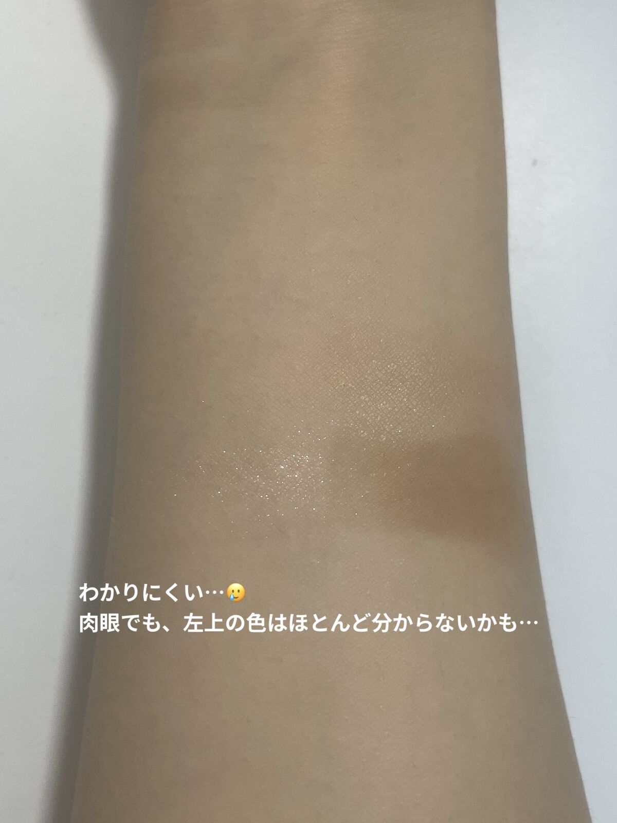 しっかりとプレストしてあって、ぎっしりラメが詰まってる…😭💕 最高に綺麗な艶ができる! 比較として、セザンヌの有名ハイライトよりかはサラサラに感じて、Macの有名ハイライトよりかはしっとりしてる感じがします! 口コミで「上品」ってよく見かけましたが、その意味がよーく分かる!ほんと上品! 顔がフワッと明るくなって水分をいっぱい含んだうるうるの肌にみえる! きっと持ってる人が多そうなセザンヌのパールグロウハイライト01と比べると、艶というよりかはラメっぽいかなという印象。 ただ少しだけ気になったのは、やっぱりベースの色の濃さ。 左上はシアー、左下はシマー、右2つはメタリックと質感も違っています。 私のおすすめは左上と左下混ぜる→頬、鼻筋、高く見せたい所 右上→チークとして 左下→アイシャドウ、涙袋に塗るとそれぞれの良さが発揮されるんじゃないかなと思います!ご参考までに!