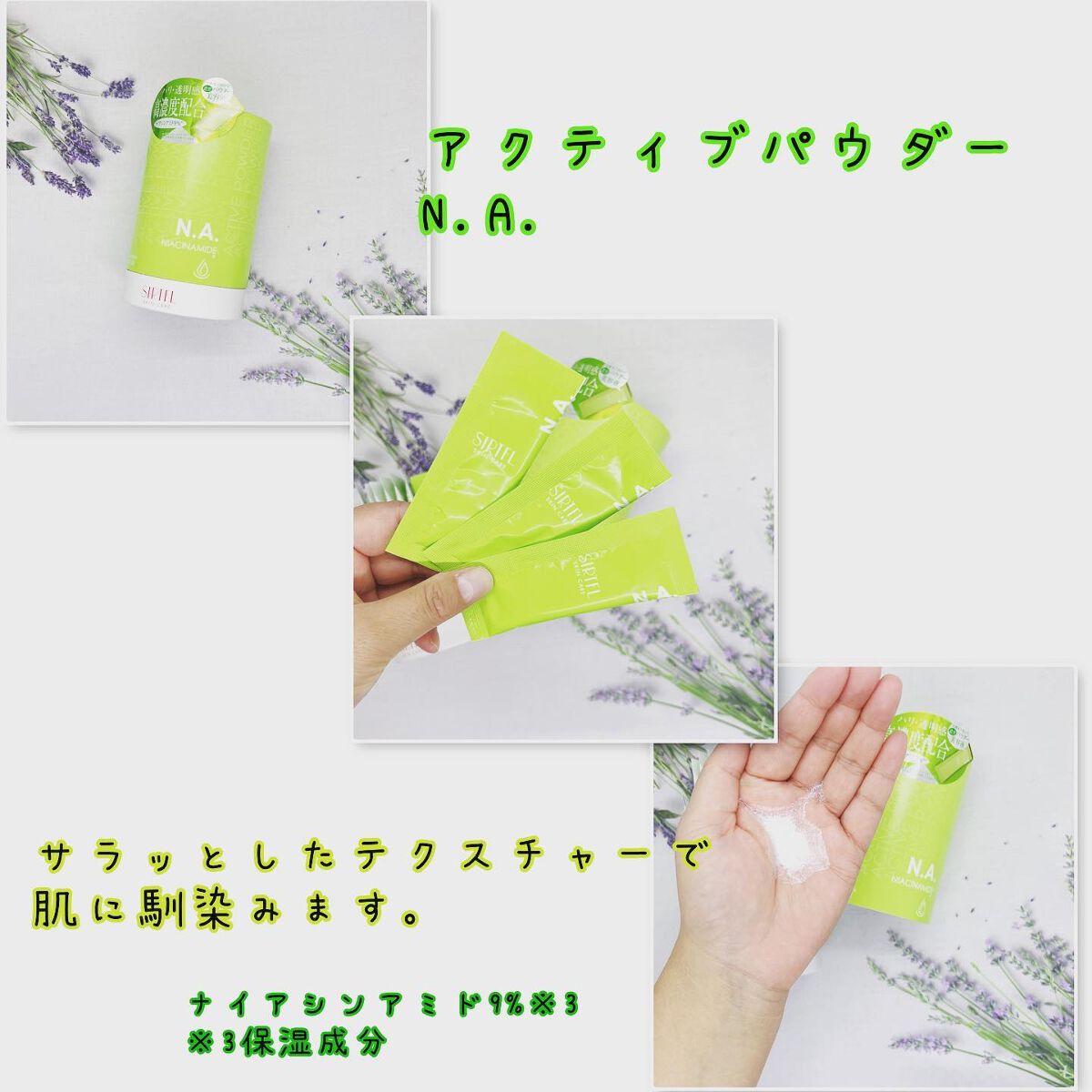 全種類使ってみて私のお気に入りは、ヘアケアシリーズの中では、CCスムースシャンプー/トリートメント スキンケアシリーズの中ではアクティブパウダー N.A. CCスムースシャンプー/トリートメントは、軽めのテクスチャーで、泡立ちよくすっきりとした洗い心地。 パウダー美容液のアクティブパウダー N.A.はきめ細かいサラサラのパウダー状テクスチャー。 セラミドローション自体がさっぱりとしたテクスチャーで、アクティブパウダー N.A.も溶けやすくだまにならず、ベタつきにくく、いつものスキンケアにプラスしやすいのも魅力の一つだと思います。 その日のお肌の状態で好みの種類を選べるから、スキンケアのモチベーションも上がって楽しい! 個包装なので出張先や旅先に持っていけるのも便利。 パッケージも可愛いからちょっとした贈り物にもお勧めです。