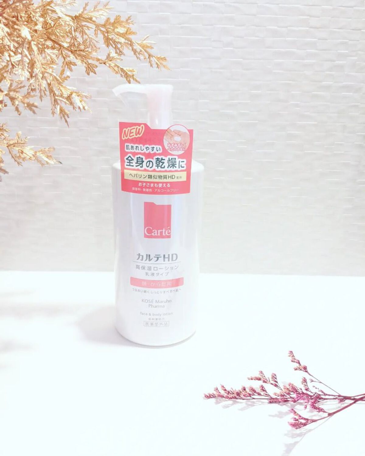 - 【高保湿フェイス&ボディローション】 顔にもからだにも。しっとりやわらか肌つづく。 信頼の保水有効成分「ヘパリン類似物質HD※」配合、低刺激処方の高機能フェイス&ボディローションです。 ヘパリン類似物質HDが、気温・湿度の変化で乾燥しやすいからだの肌のうるおい構造(角層ラメラ)を立て直し、しっとりやわらか肌に導きます。 2種のこだわりオイル配合で、しっとりするのにべたつかず、なめらかにのびひろがる使用感。敏感な肌でもまさつによるストレスがなく、全身をうるおいで満たします。 カルテHDシリーズとしては初めてお子さま(3歳以上)にもお使いいただける商品。 ・ボトルタイプ(220mL) ・ポンプタイプ(410mL) ・つめかえ用(370mL)の3種でラインアップ。 ご自身の保湿に、ご家族や大切なかたの保湿に。みずみずしくなめらかなうるおいが全身を包み込むフェイス&ボディローションです。 ※保水有効成分ヘパリン類似物質のこと <販売名:HD フェイスボディL>