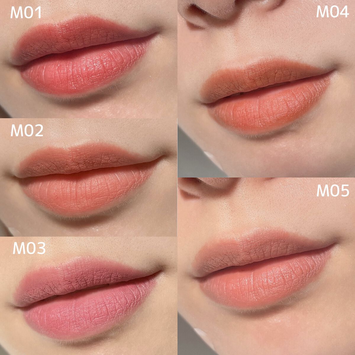 #提供❁.˚‧º‧‧º·˚.❁ リプモン スフレマット 4色スウォッチ❁.˚‧º‧‧º·˚.❁KATEリップモンスタースフレマットをお試し✧*˚₊‧ੈ✩おすすめポイントੈ✩‧₊˚*⋆つけたての色が長時間持続⋆ふんわりマット質感に変化する落...