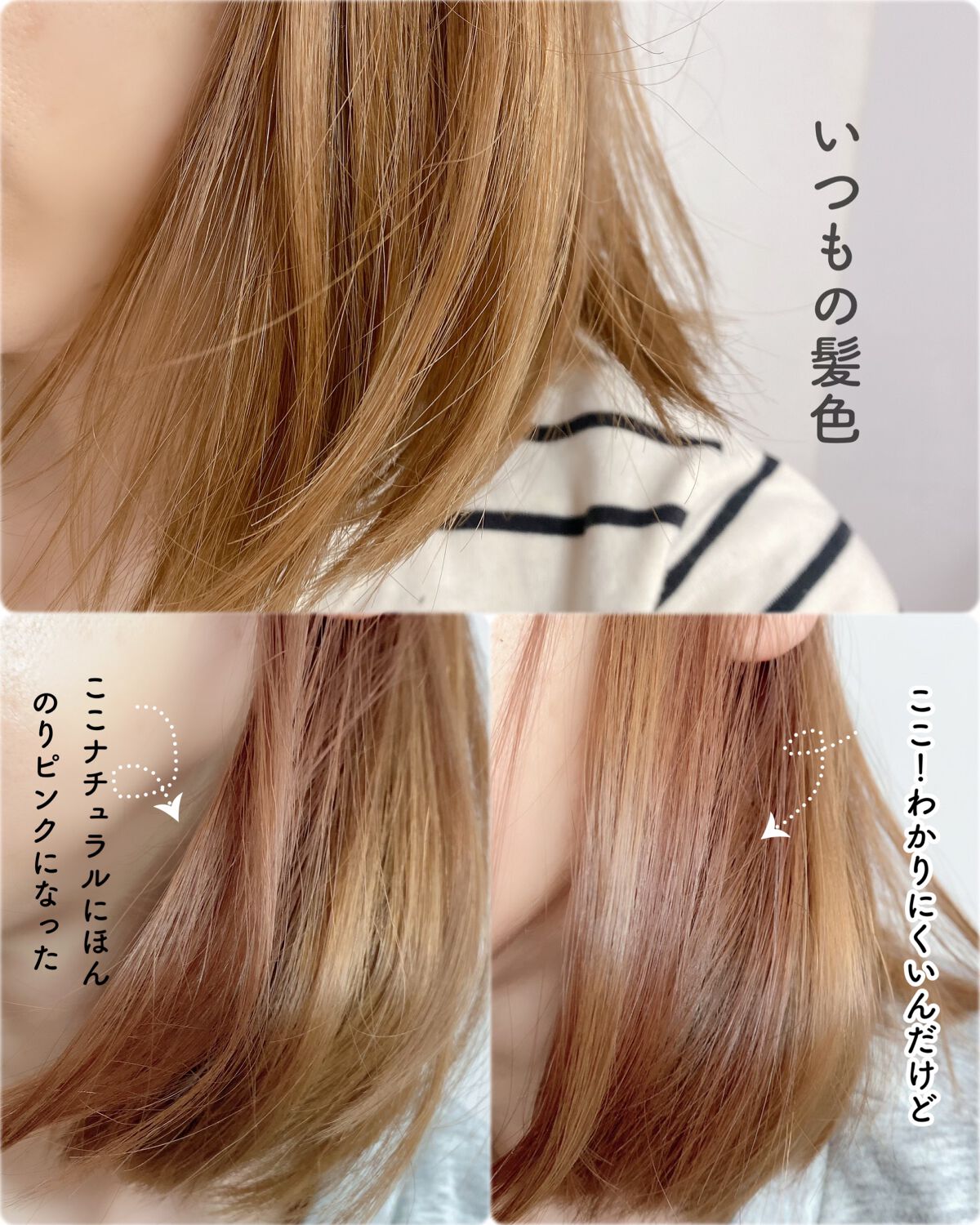 🏷️フレッシュライト ミルキーヘアカラーシャンパンピンク以前インナーカラーするのにブリーチかけた所は色が入りづらかったのでもしかしたら色をぬいても入りずらいのかなって思いました🙇💦やってみないと分からないのでそこは言いきれませんが、、🥲🥲ブリ...