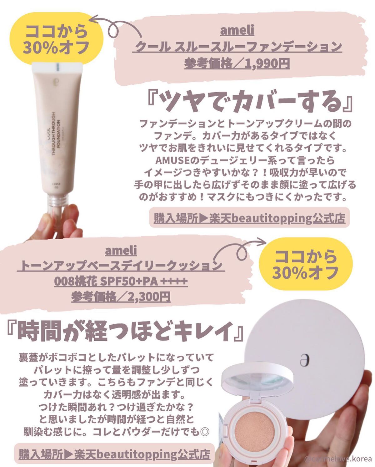 クッションファンデって肌質や下地との組み合わせで全然仕上がりや崩れ方が変わるので『おすすめのクッションファンデ何ですか?』と聞かれると答えるのがとっても難しいんですが、私の完全な個人的観点でザックリまとめてみました。 ぜひいろんな下地やその日の朝のスキンケアを変えてみて自分と仲良くなれる方法を探してみてくださいね! どんどん新しい魅力的なクッションファンデが発売されるので今使ってるのがとっても良くても、もっといいんじゃないか?と思って、また新しいのを使ってみたくなるというクッションファンデは無限ループです😂