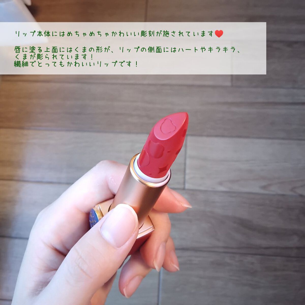 - 可愛らしいテディがお届け。ほんのり香るチョコの香りと鮮やかな発色、なめらかでひと塗で理想なグラマラス唇に。